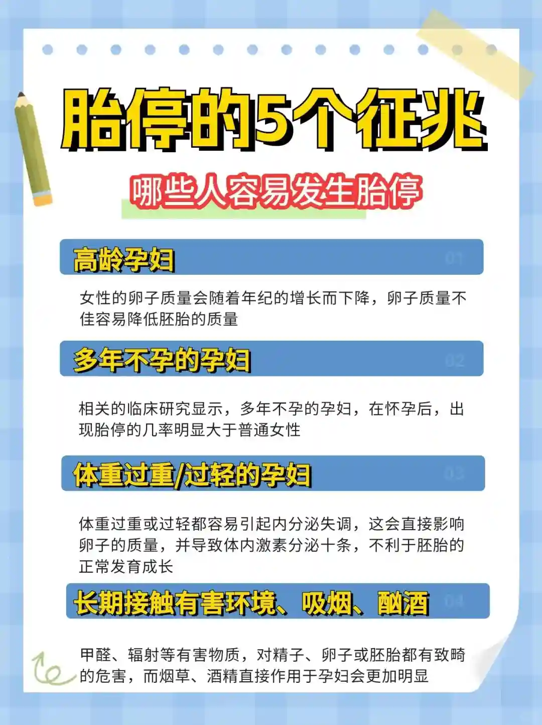 4.长期接触有害环境、吸烟、酗酒的孕妇