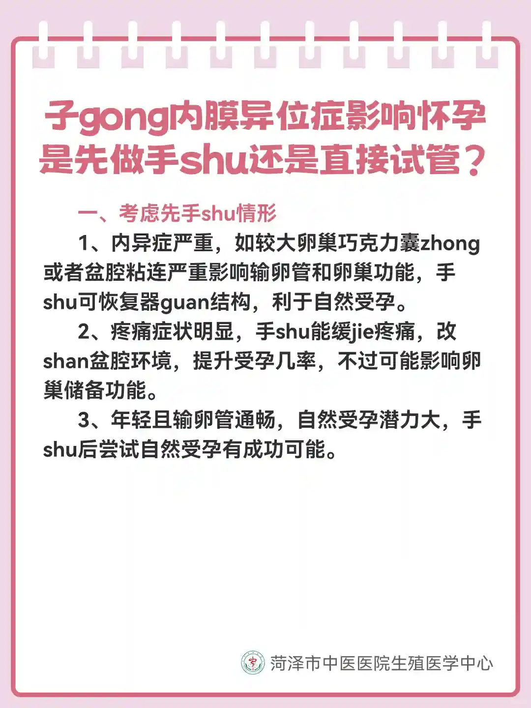 疼痛症状明显,手shu能缓jie疼痛,改shan盆腔环境,提升受孕几率,不过可能影响卵巢储备功能。