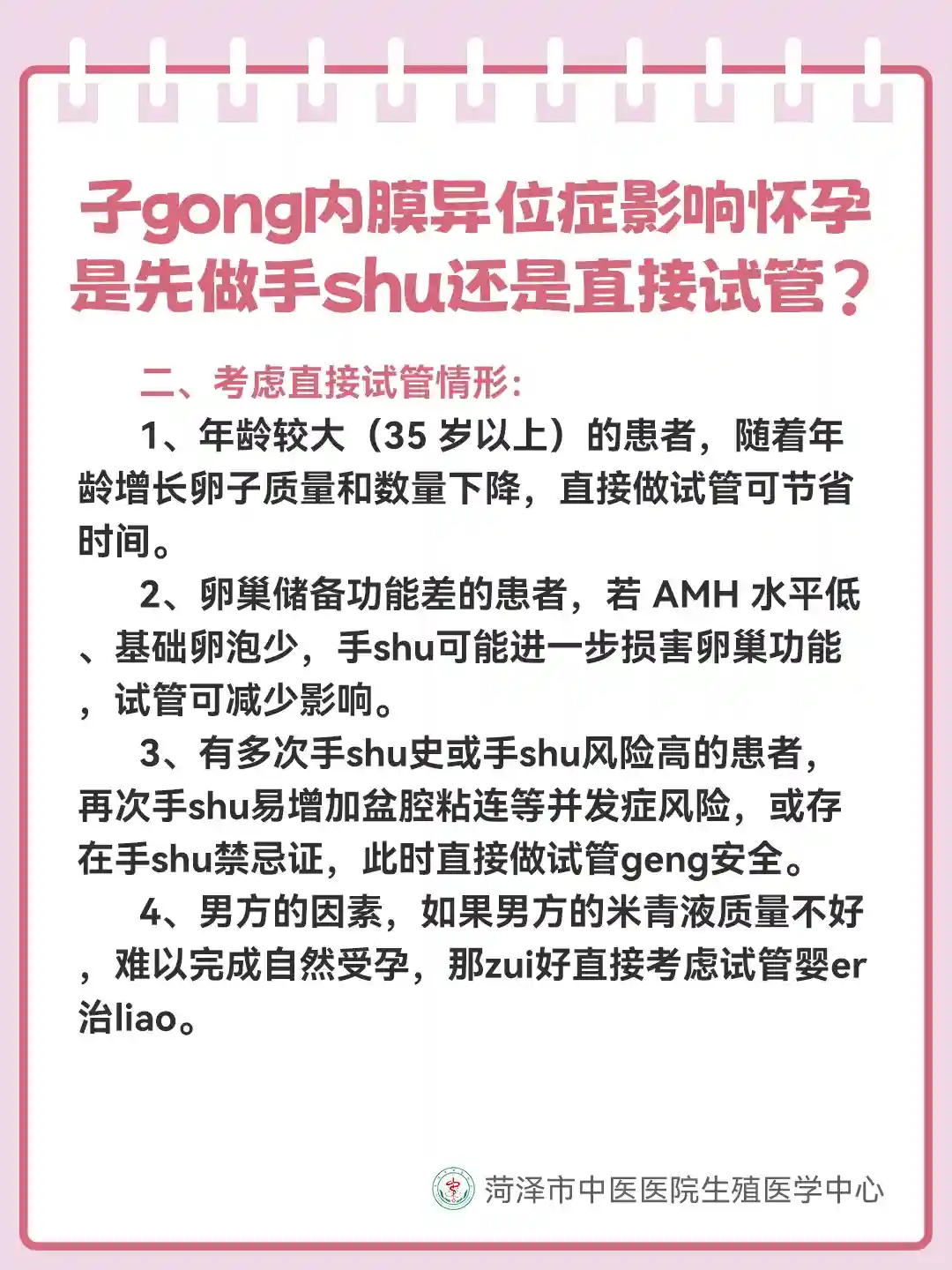 有多次手shu史或手shu风险高的患者,再次手shu易增加盆腔粘连等并发症风险,或存在手shu禁忌证,此时直接做试管geng安全。