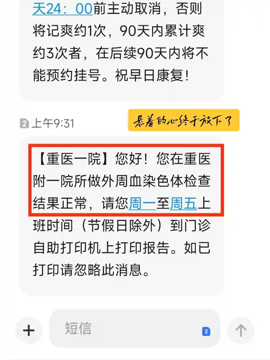 检查结果出来第1时间就可以在手机上查看,感谢科技发展让我们能够享受到这么好的服务✌️