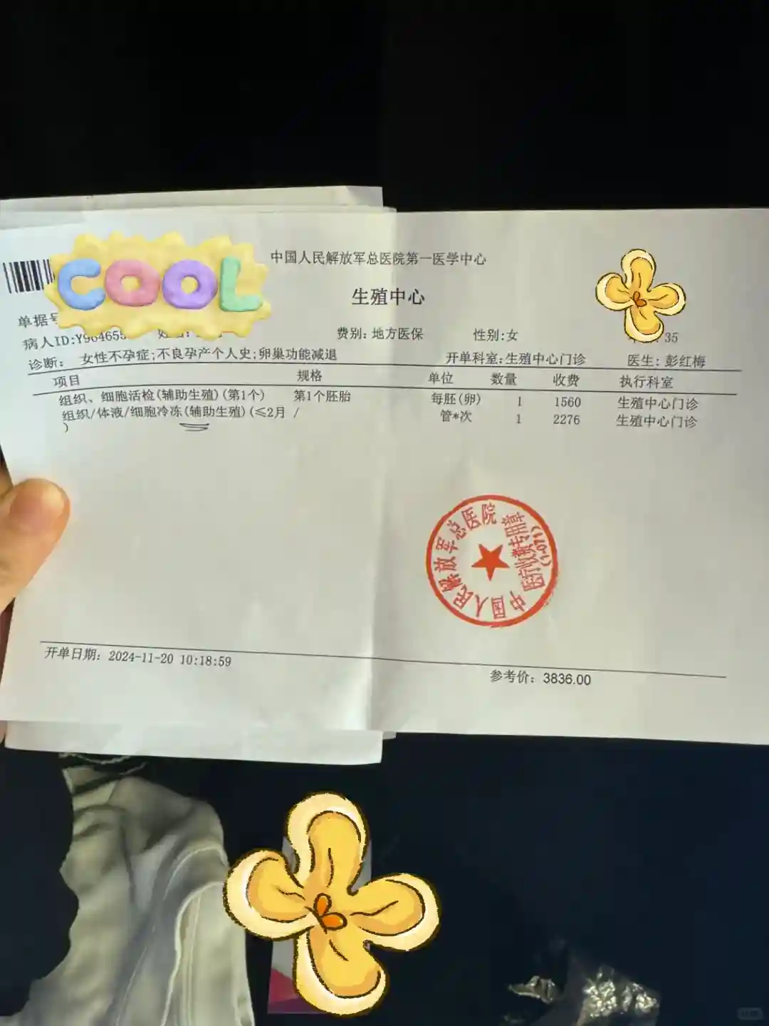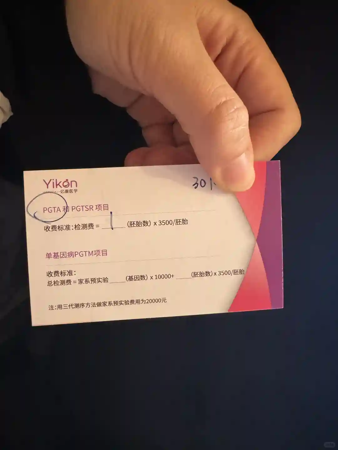 1枚胚胎三代检测费用3500,期待1个月后的结果,宝贝加油哦