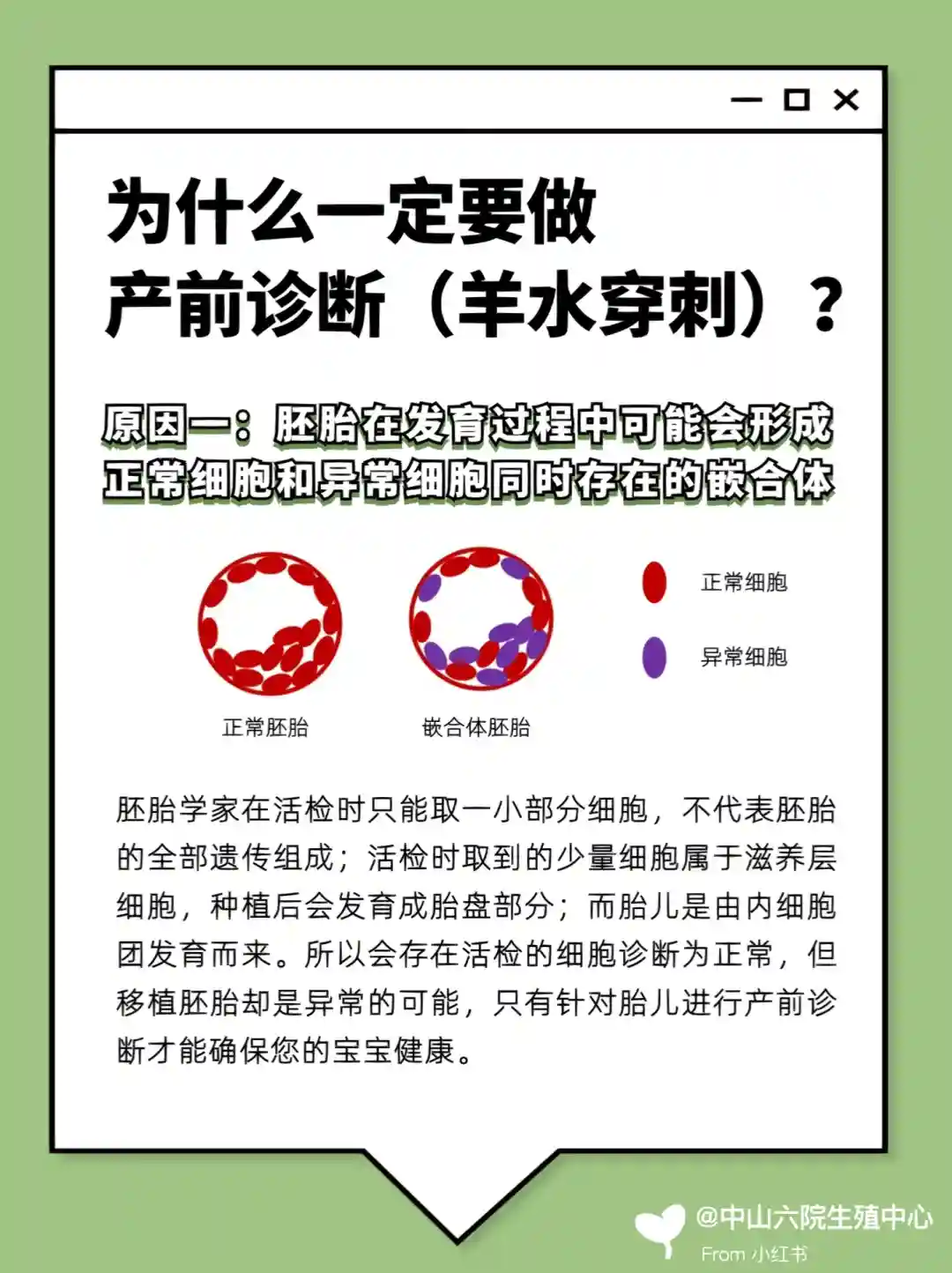 所以会存在活检的细胞诊断为正常,但移植胚胎却是异常的可能,只有针对胎儿进行产前诊断才能确保您的宝宝健康👶