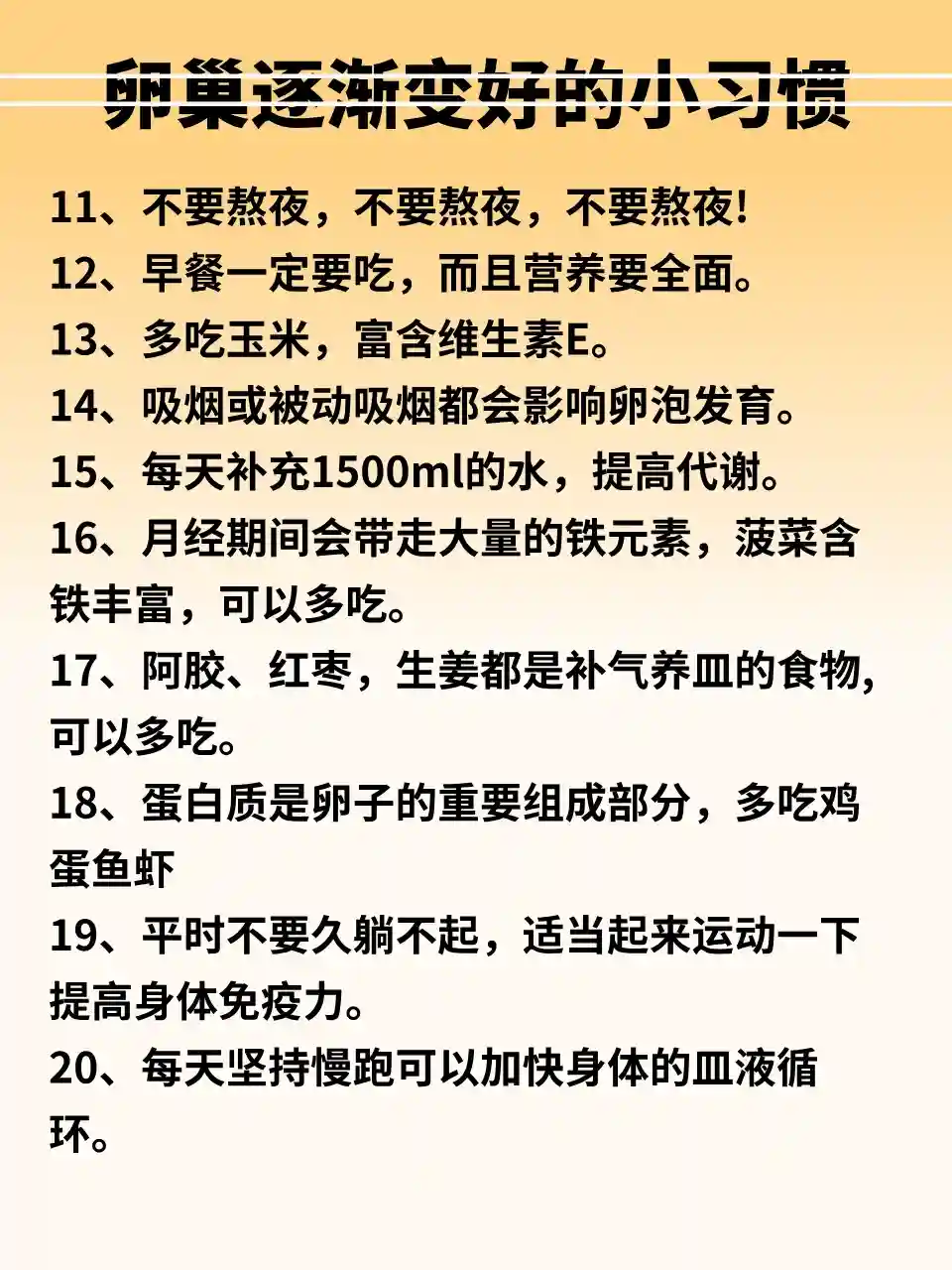 多喝水可以加速新陈代谢,早上起床空腹状态喝一杯温水,可以更好地清肠胃,身体顺畅对卯泡的发育是有帮助的