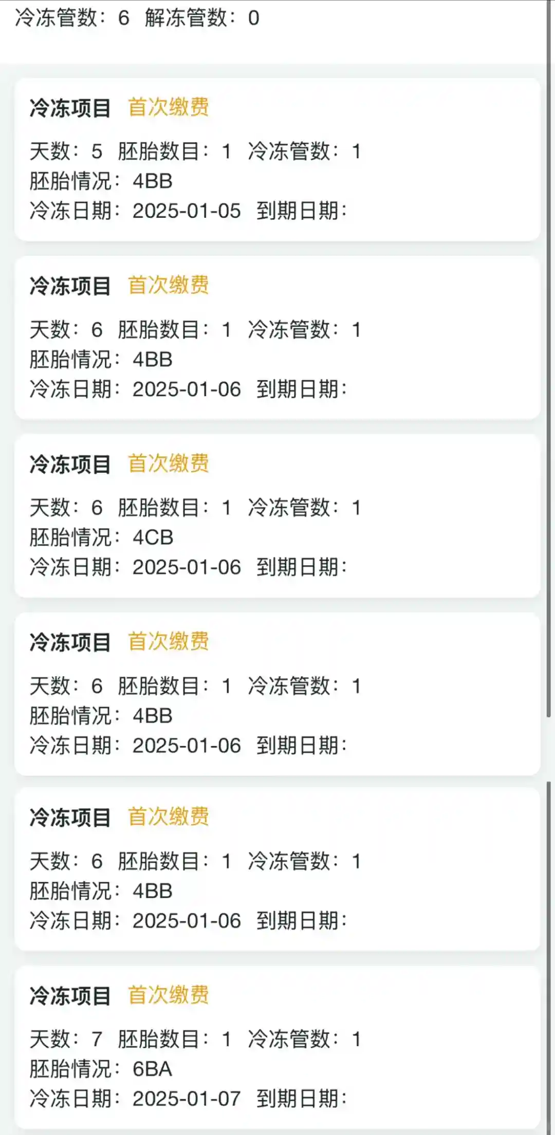 焦虑了三天,到1月6日,同一天取卵的姐妹们都已经有养囊结果了,我还没,直到1月7日,才在小程序刷到,9个养成了6个囊胚,其中一个是7天的囊胚,才明白为啥我比别人晚一天才有结果,很感谢中六这么尽力帮我养囊,三代真的太需要囊胚了,虽然费用也是蹭蹭蹭上涨