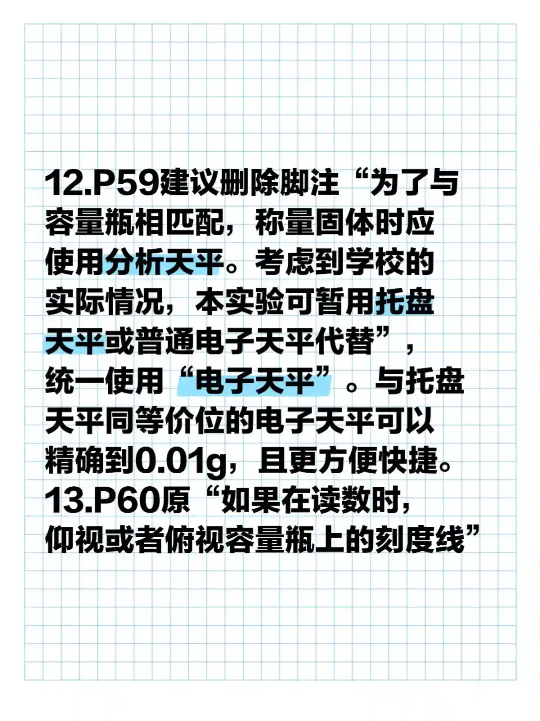 13.P60原“如果在读数时,仰视或者俯视容量瓶上的刻度线”,现变更为“如果在配制时,仰视或者俯视容量瓶上的刻度线”。