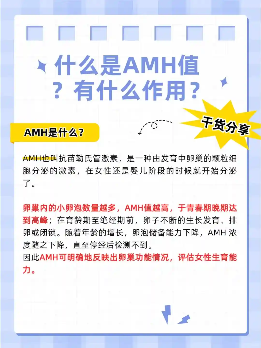 因此AMH可明确地反映出卵巢功能情况,评估女性生育能力。