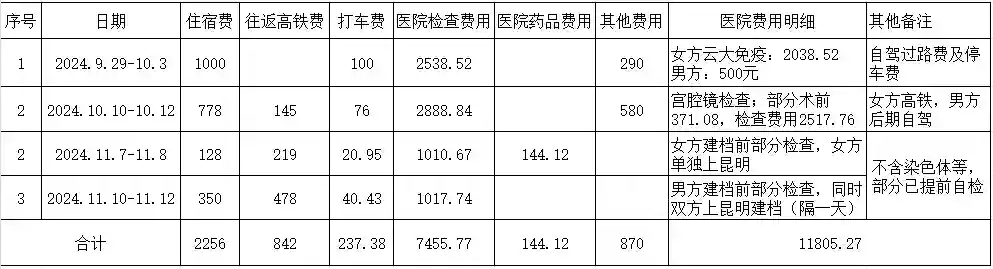 截止到目前,医院共花费金额7599.89元(含前期部分免疫检查、宫腔镜检查、建档检查等,不包括染色体筛查、地州部分检查等),其余费用详见图3(仅仅作为我这边除餐饮外支付费用的记录,不具备普遍性,具体费用请根据自己的实际情况)。
