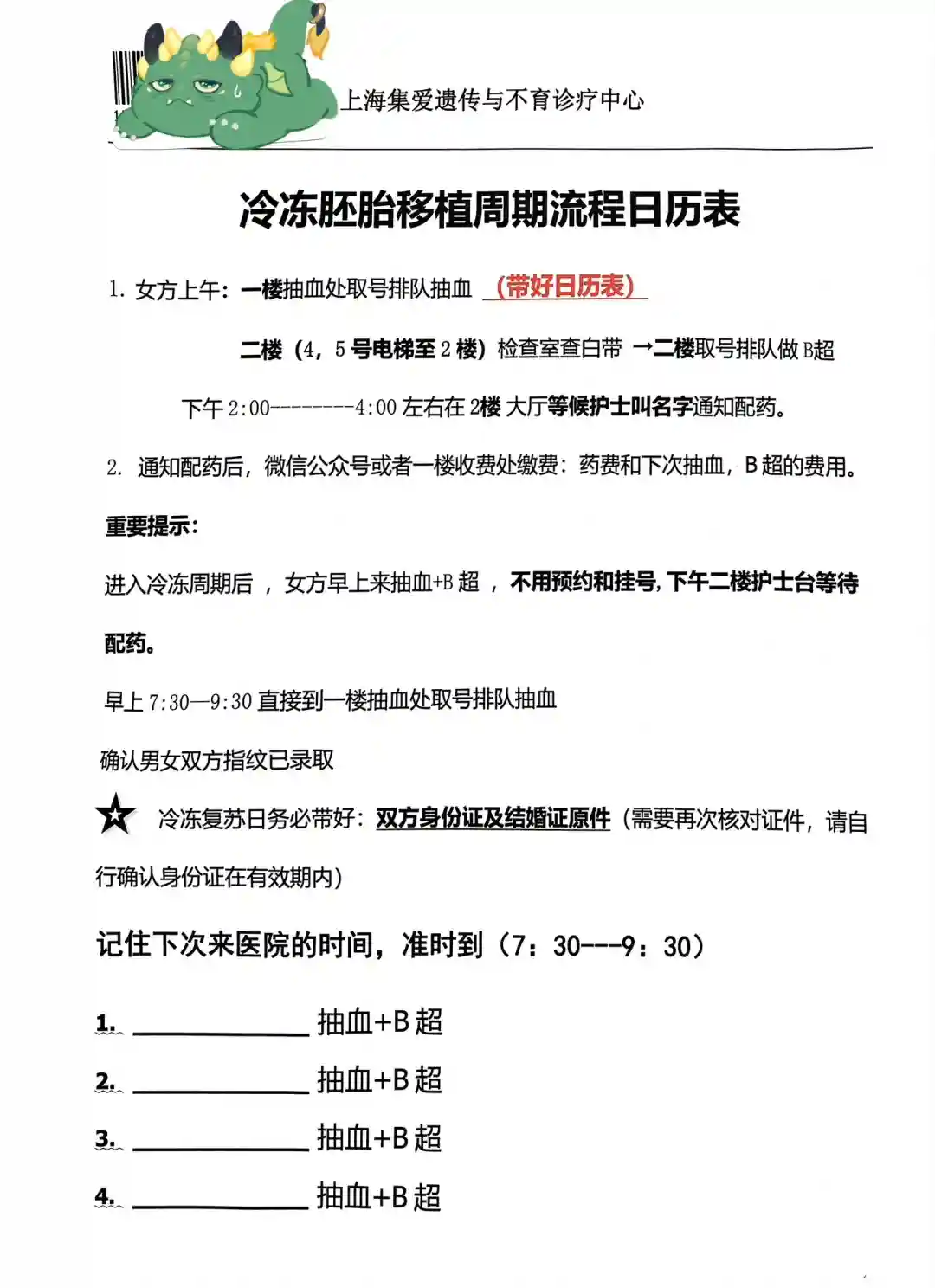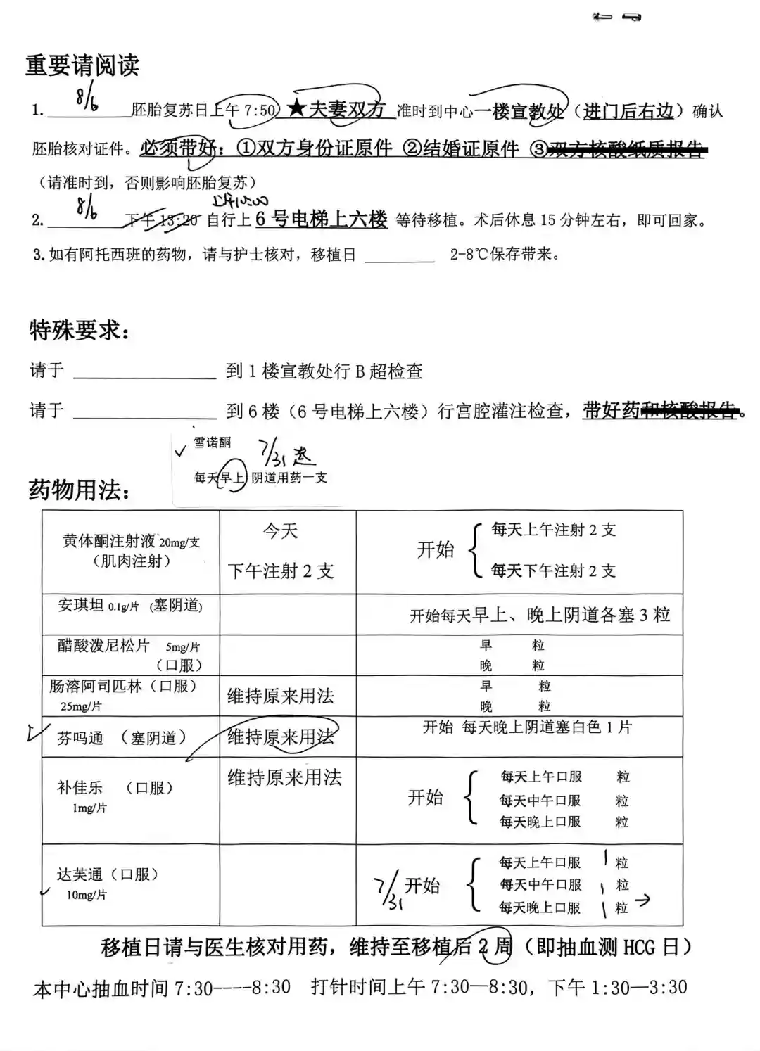 8.6周日早上7:50到一楼宣教处签协议解冻胚胎,9:30开始喝水,10点整到六楼手术室准备移植。虽然提前预知了憋尿过程会很痛苦,打算分次小口慢慢喝,但一瓶水下肚没一会儿还是很想上厕所,尴尬得我在手术室门外晃来晃去好在那天运气不错傅医生值班,我就很幸运地还是她移植,移植完了她还帮我塞了雪诺酮,好温柔好贴心整个过程大概10分钟不到,在休息室躺了一会儿就和队友一起回酒店了,路上还一起分享了两根棒棒糖