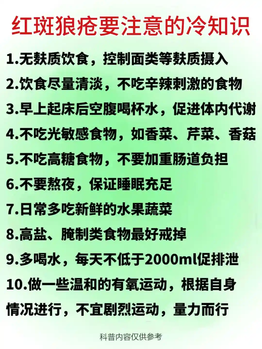 👉红斑狼疮日常护理: