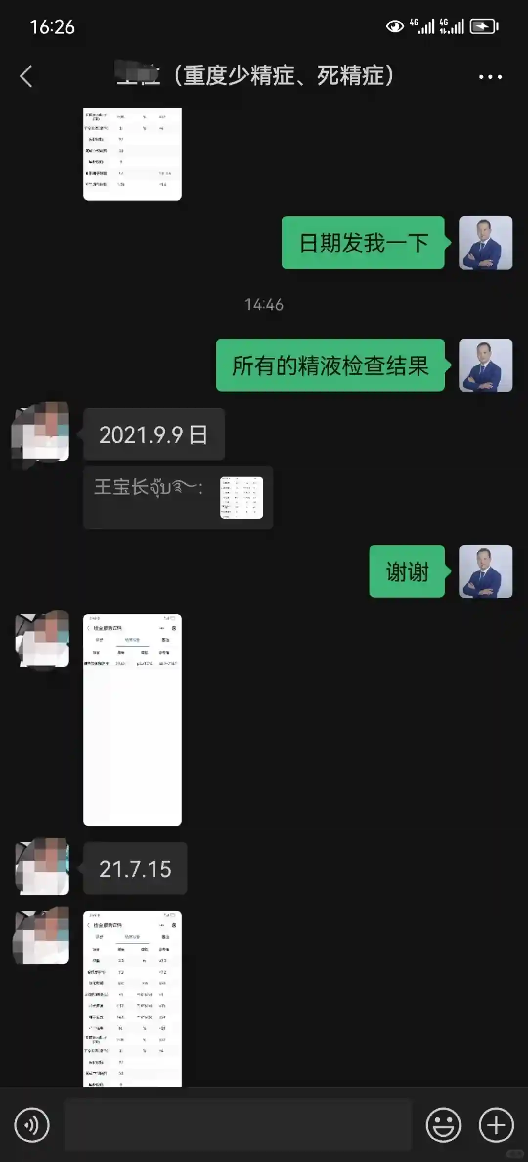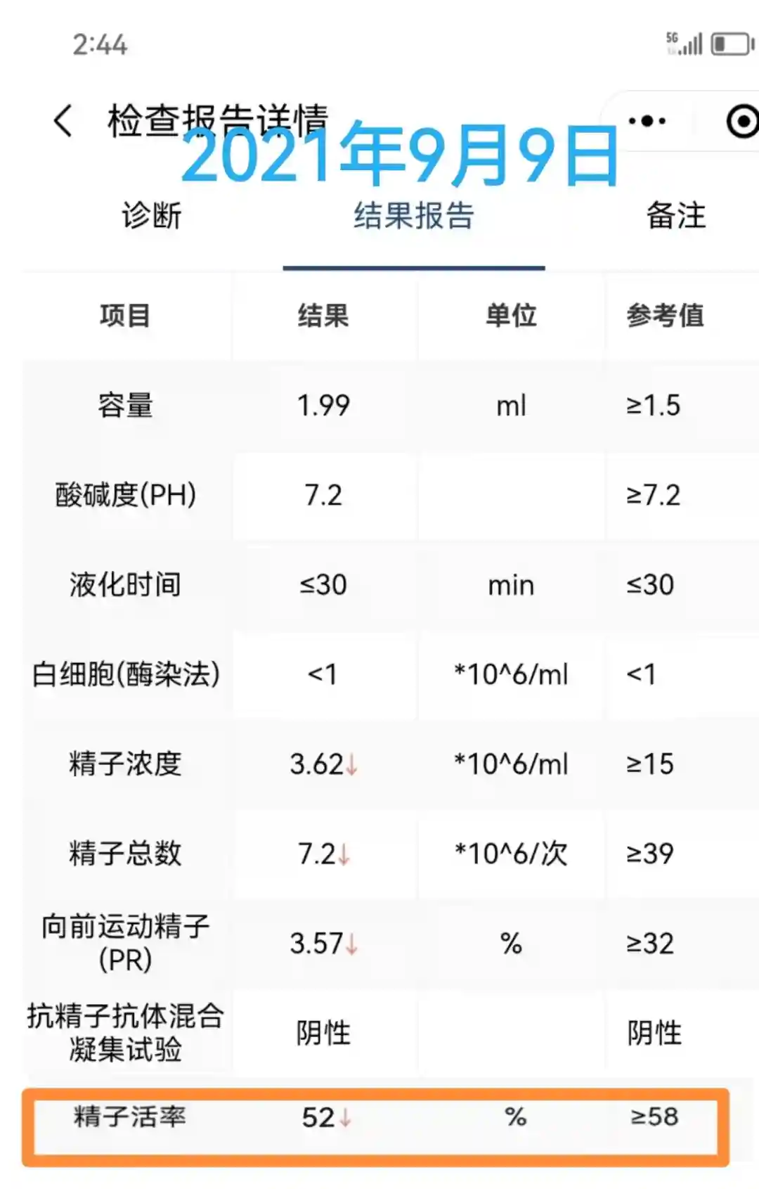 2.2次试管失败,第1次目前14个,受精5个,最后细胞期胚胎(6C3)冷冻一个。第2次,取卵12个,受精4个,最后细胞期胚胎7C3。移植均为着床。3.2021年7月开始有效治疗后,2021年9查精子活率增加,女方开始检查,再次进入试管。取卵14枚,受精8枚,冻存细胞期胚胎2枚(8C2、8C1),囊胚5BB 2枚,6BA 1枚,6 AB 1枚。移植细胞期胚胎2枚,生育1女。