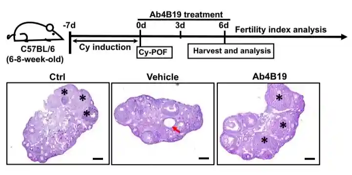 该研究发现TrkB激活型抗体药物Ab4B19能够模拟BDNF通过TrkB介导的生物学功能,从而促进卵泡发育,恢复模型动物的生育能力,是一种治疗POF的潜在创新药物。