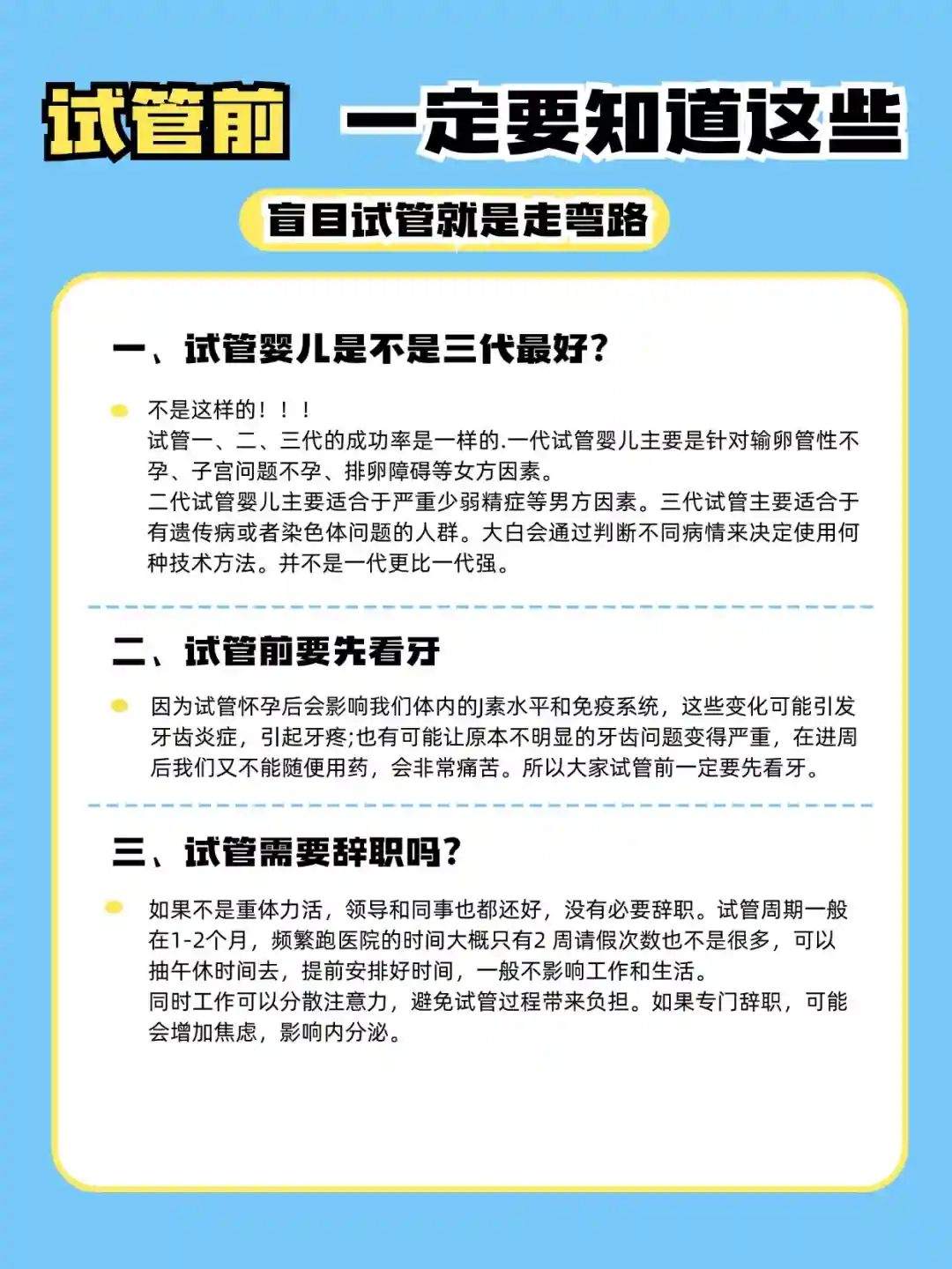 不是这样的!试管一、二、三代的成功率是一样的.一代试管婴儿主要是针对输卵管性不孕、子宫问题不孕、排卵障碍等女方因素。