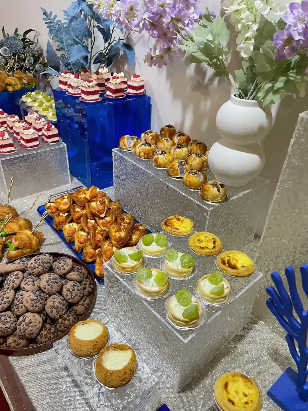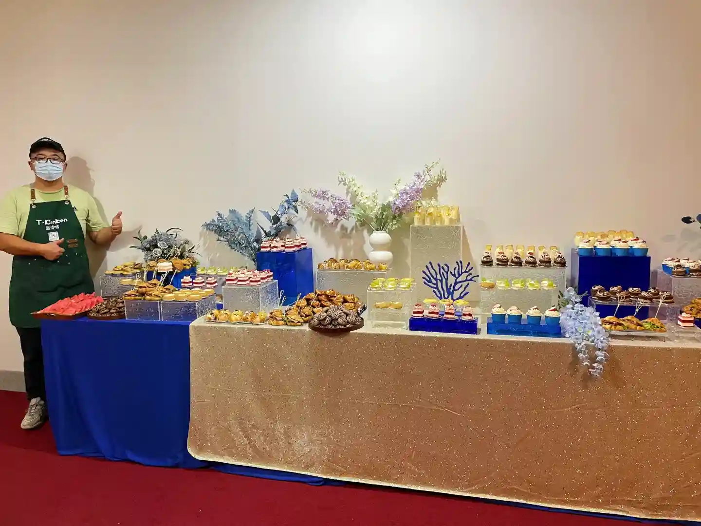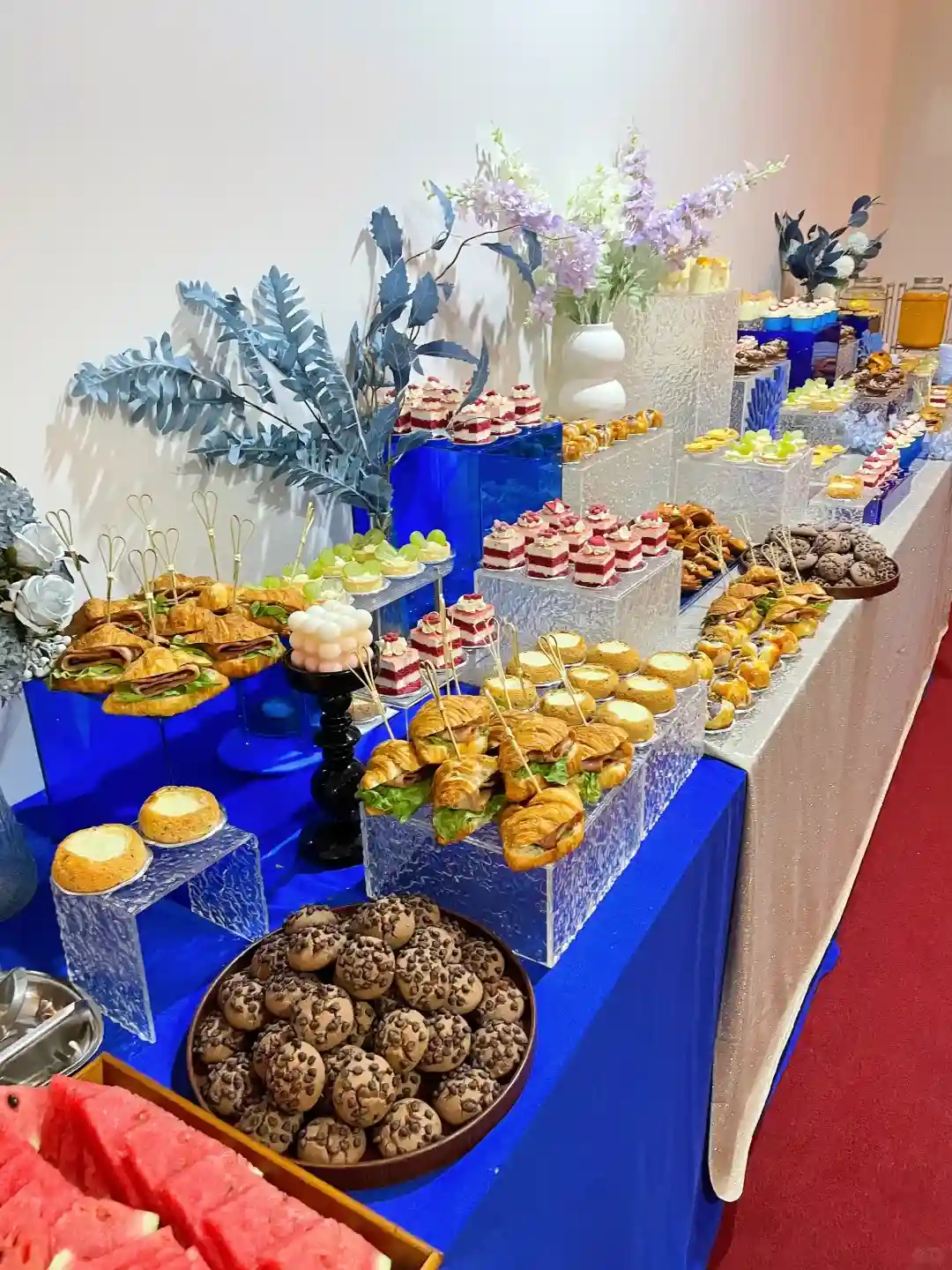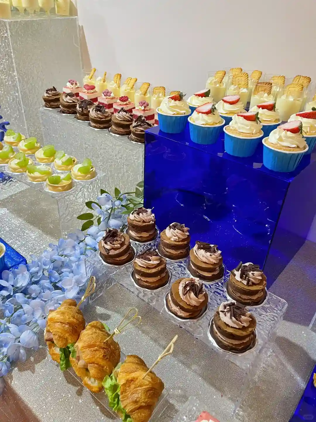 🍽️ 一走进会场,就被那些精致的美食吸引了!甜点和小吃琳琅满目,色彩缤纷得让人眼花缭乱。特别是那些蓝色系的点心,简直是艺术品,与整个蓝色主题完美融合,让我忍不住拍了好多照片!
