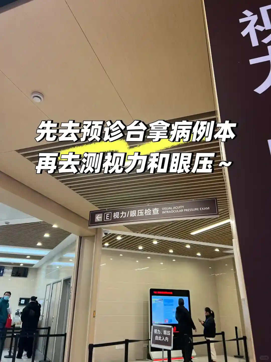 3️⃣到医院后,先去预诊台拿病例本,无论看哪个科室,都要先去视力和眼压。询问在2楼ABCD哪个区看诊。在对应的区域签到等叫号。