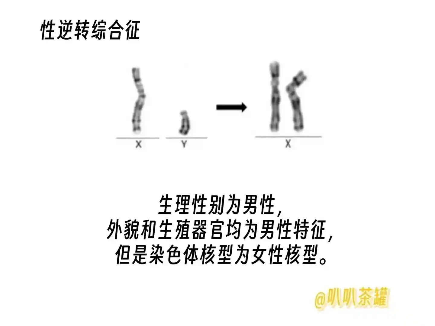💡因为基因发生了一个小小的错误,导致一个特殊群体的诞生,他们生理性别与遗传学染色体性别相反,叫性逆转综合征。