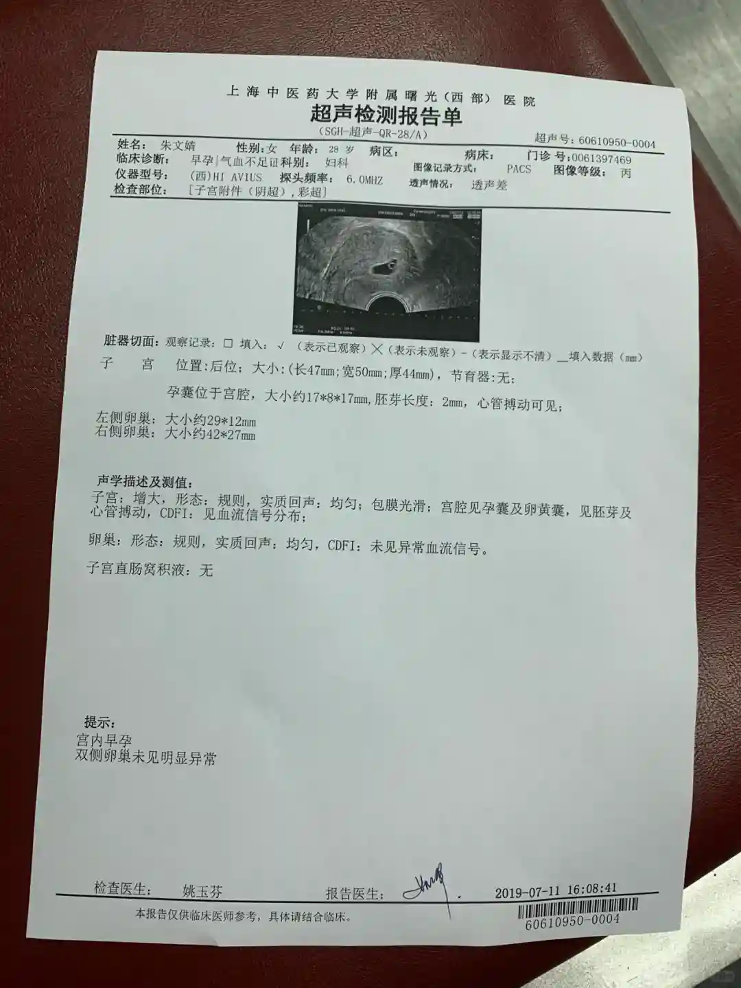 👩❤️👨在药房买了几个验孕棒,7.10当天晚上在家里测了下,两条杠。7.11早上起来又测了下,显示+号。这么看来应该是有了。就直接去公司附近的曙光医院挂号看看,果然真的怀孕了😄👩❤️👨由于见红过一次,我又有点甲状腺结节,曙光医院的医生叫我吃阿司匹林。我网上查了以后发现这个药吃了可能会导致胎儿畸形,立马去红房子医院挂号看早孕科,红房子医生看了我的报告,就直接问我阿司匹林吃过吗,我说没有,医生说还好没吃!根本没必要吃的,由于见红过,就给我配了点保胎药,后面就直接在红房子建大卡了。
