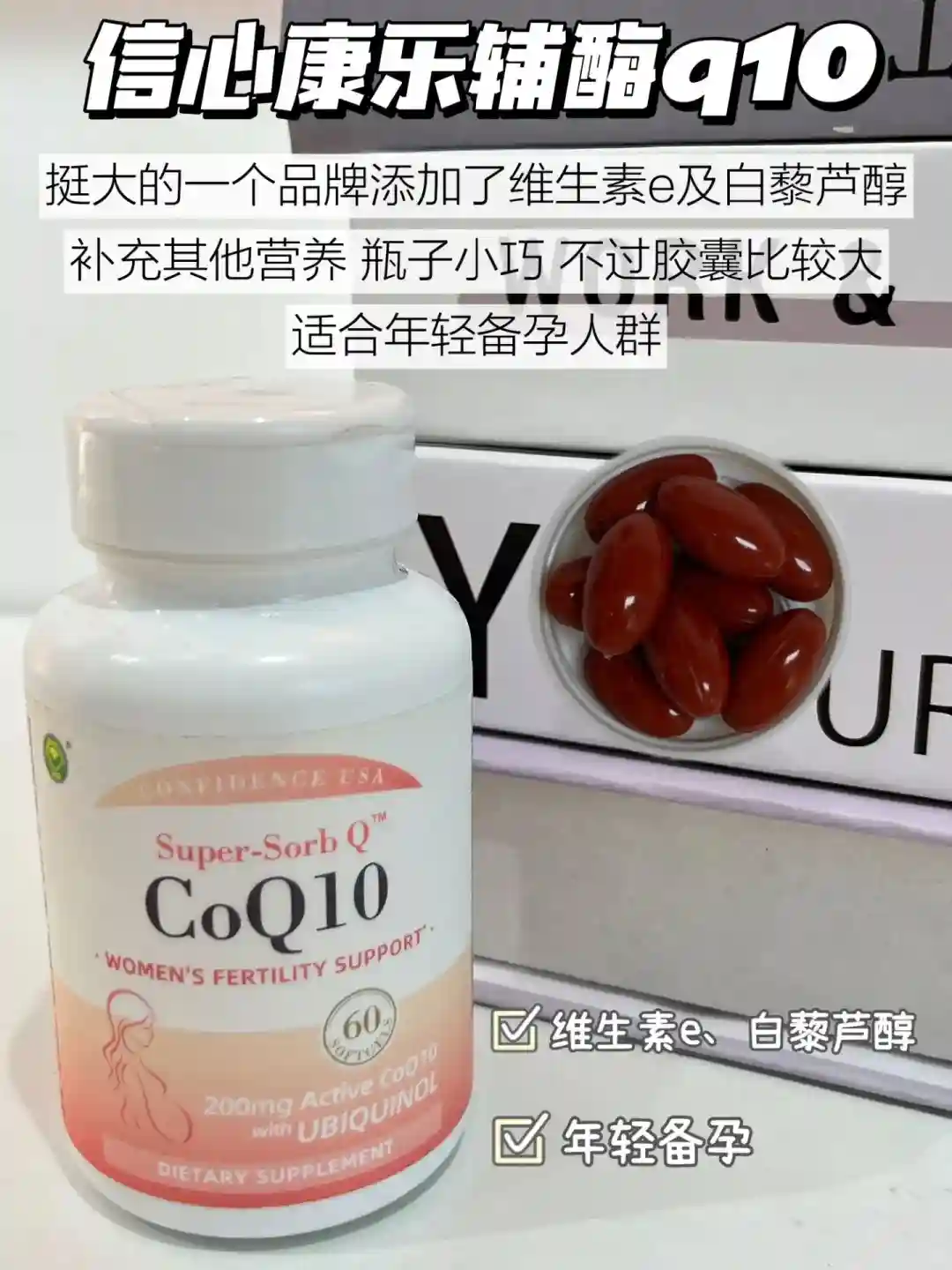 ✔备孕辅酶q10一天要补充200mg,分开吸收对身体的负担小,所以选择一粒100mg的