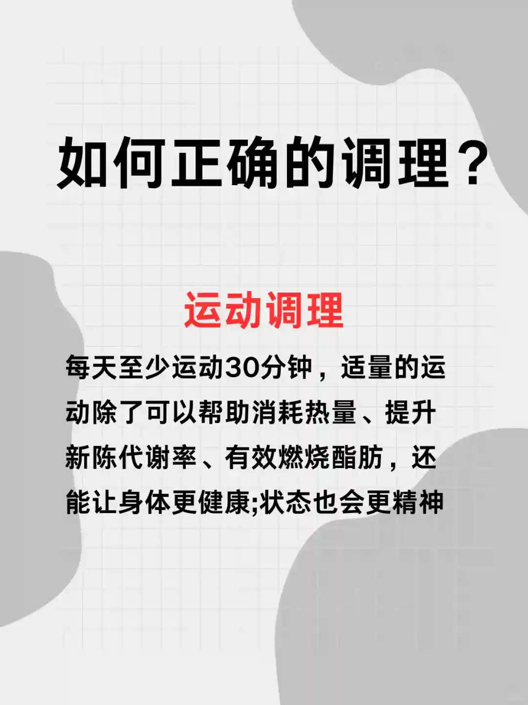 每天至少运动30分钟,适量的运动除了可以帮助消耗热量、提升新陈代谢率、有效燃烧酯肪,还能让身体更健康;状态也会更精神