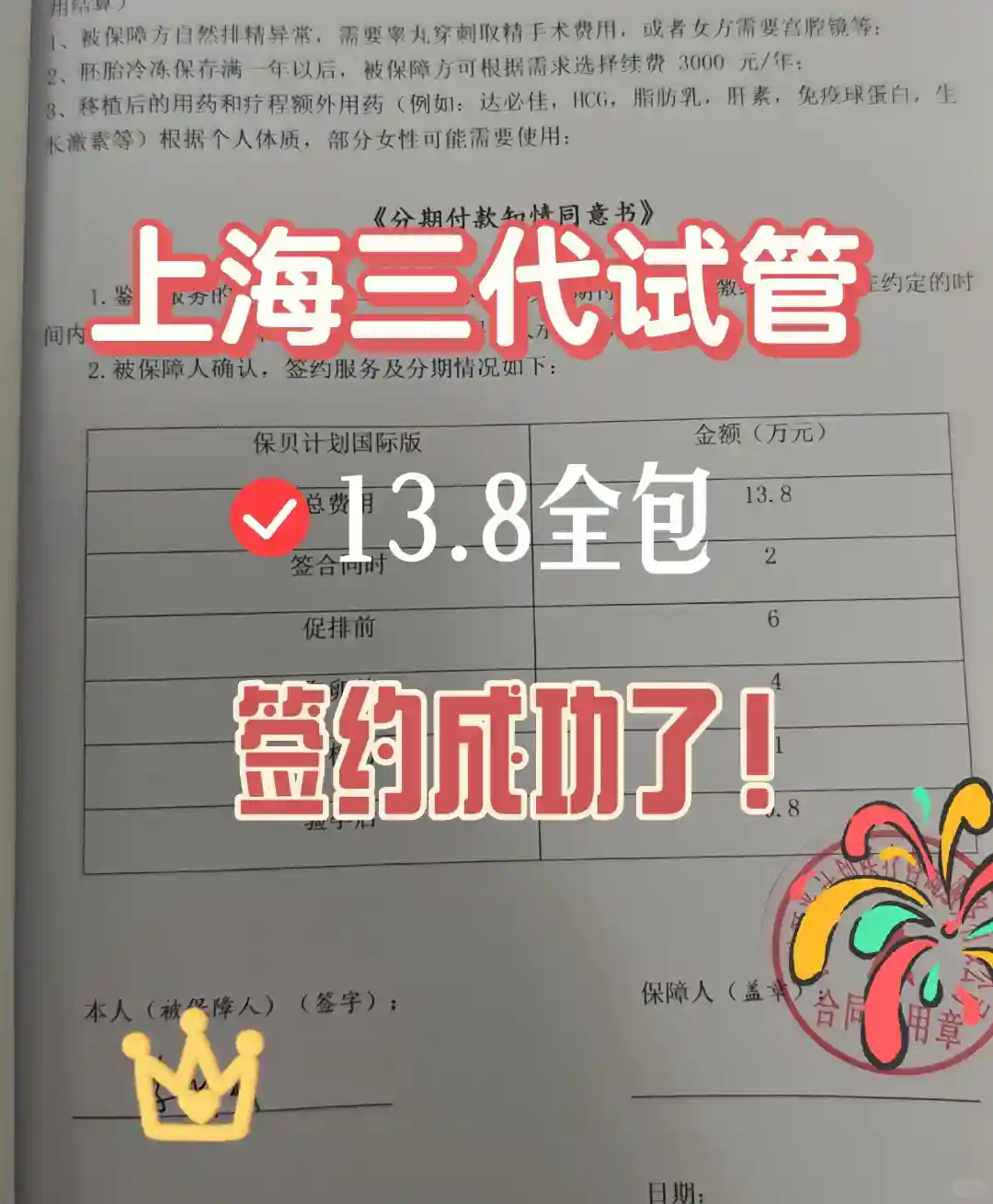 上海三代试管终于找到靠谱的了!签约成功! 供卵试管哪家好
