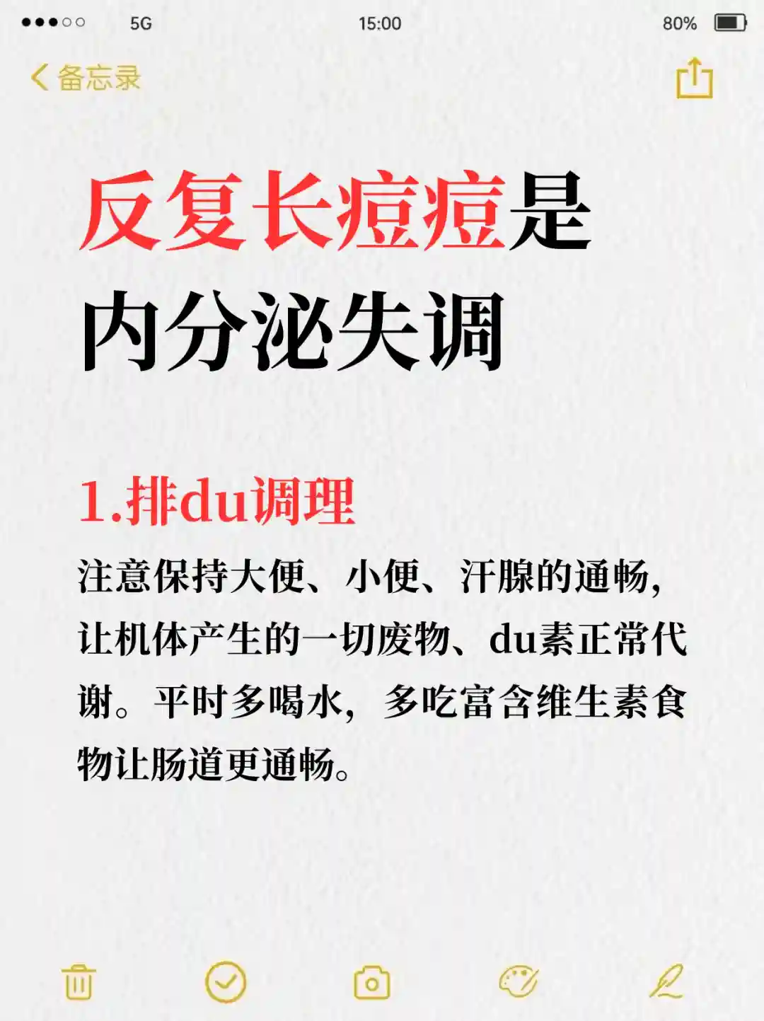 注意保持大便、小便、汗腺的通畅,让机体产生的一切废物、du素正常代谢。平时多喝水,多吃富含维生素食物让肠道更通畅。