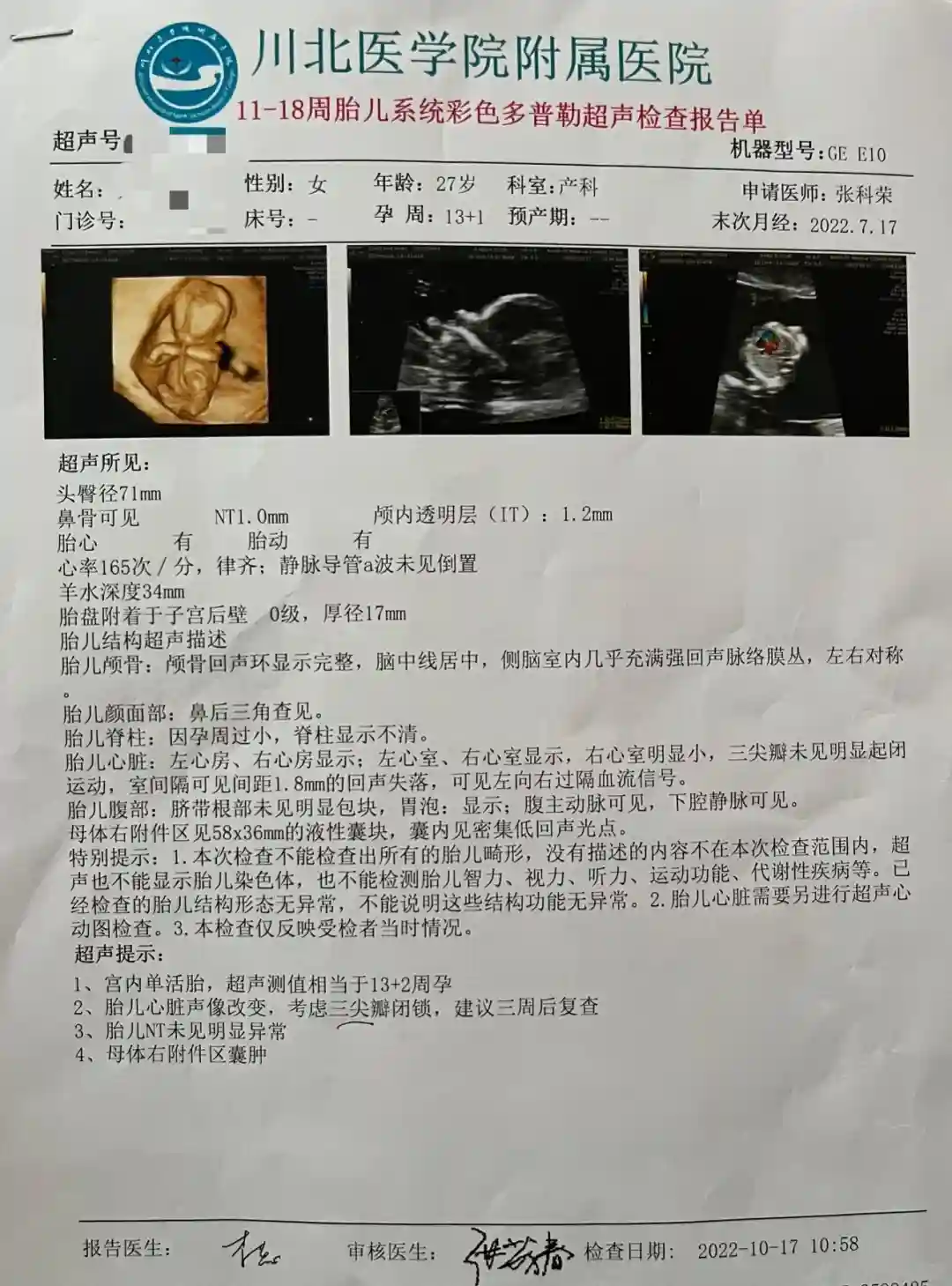 在做NT之前,我从来没有担心过宝宝,只觉得自己因为孕反快要活不下去了,但依然强撑工作加班到凌晨,也会在胃口稍微好点的时候毫不忌口,情绪也不稳定。唯一担心过没有胎心(因为身边胎停的概率比较多,所以我买了个胎心仪,偶尔听一下,就认为只要有胎心就没问题)。