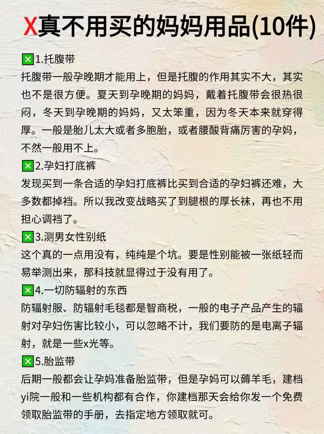 1.托腹带2.孕妇打底裤3.测男女性别纸4.一切防辐射的东西5.胎监带6.孕妇照7.月子服
