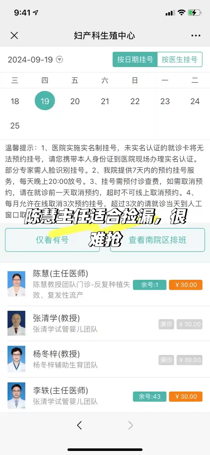 提前一周20点在中二孙逸仙gong众号放号,提前一天可以退,当天要退只能回医院窗口办理,坦白说,几乎抢不到,建议还没抢到的可以试试特诊,或者每天有空都可以刷刷,说不定会有捡漏的号,陈慧主任出诊时间是周二和周四上午,特诊时间是周一上午(检查费贵一些)
