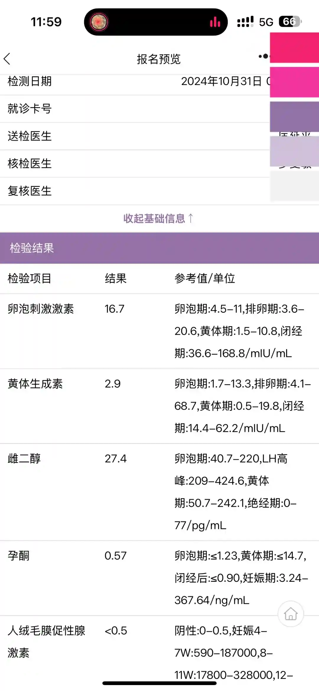 🈷️经第4天,我是想看看月经期能不能看到多个卵泡,早一点干预可以长得多一点大一点,但是这周期还是只有右边一个6大的卵泡,FSH也有点高16.7