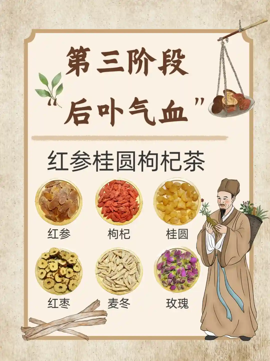 🌈:红参桂圆枸杞茶,红参4克➕枸杞6克➕桂圆6克➕红枣6克➕麦冬6克➕玫瑰4朵