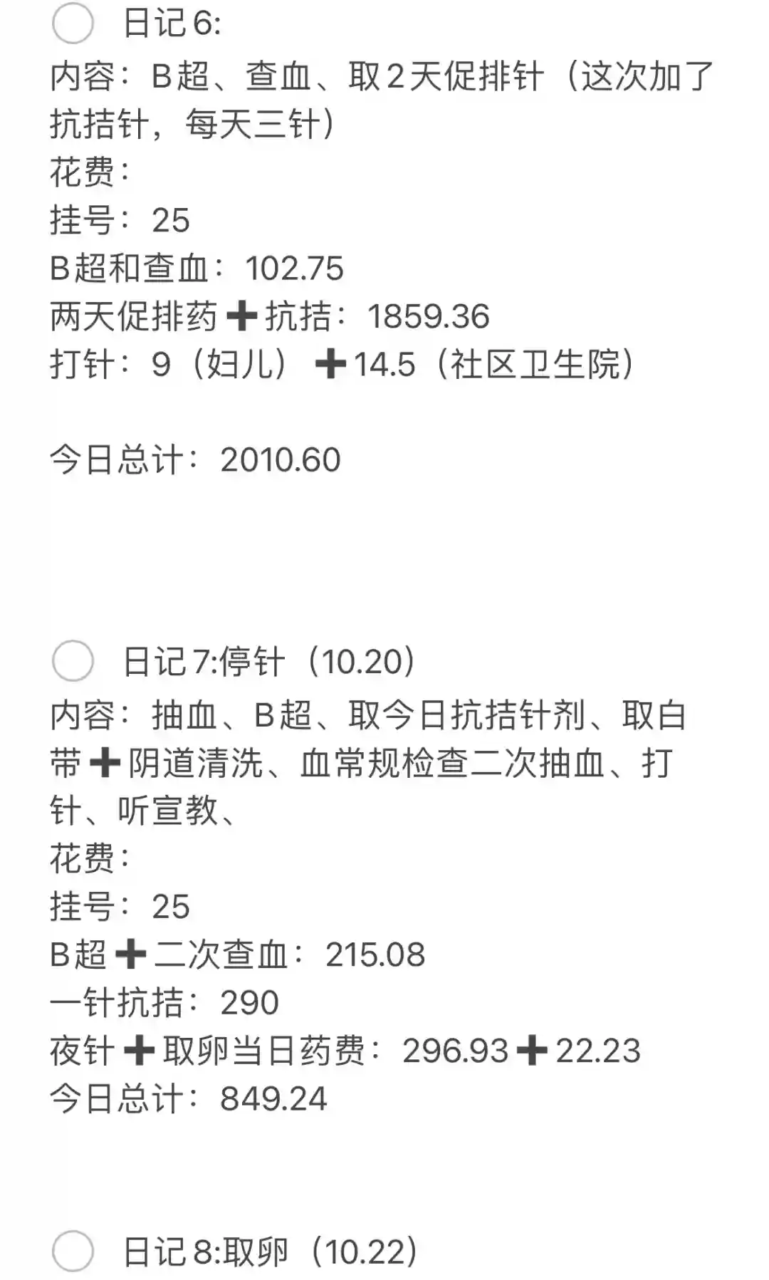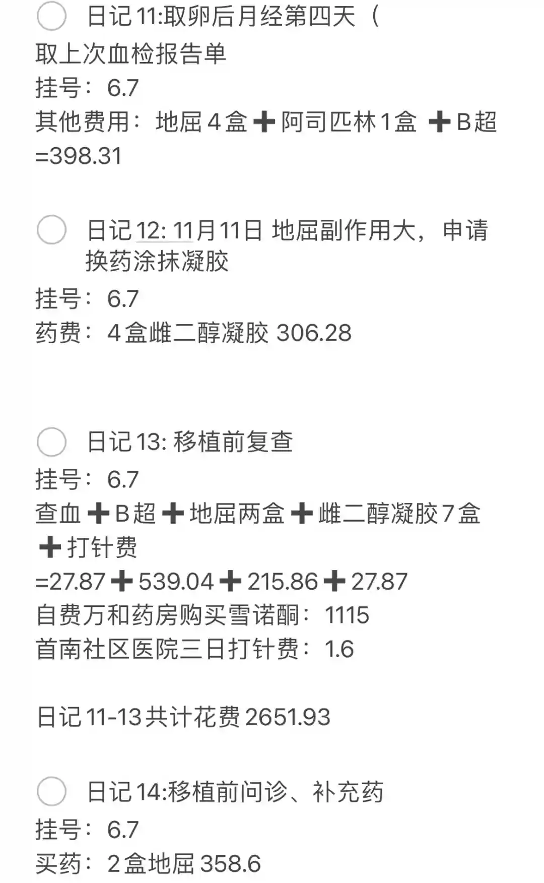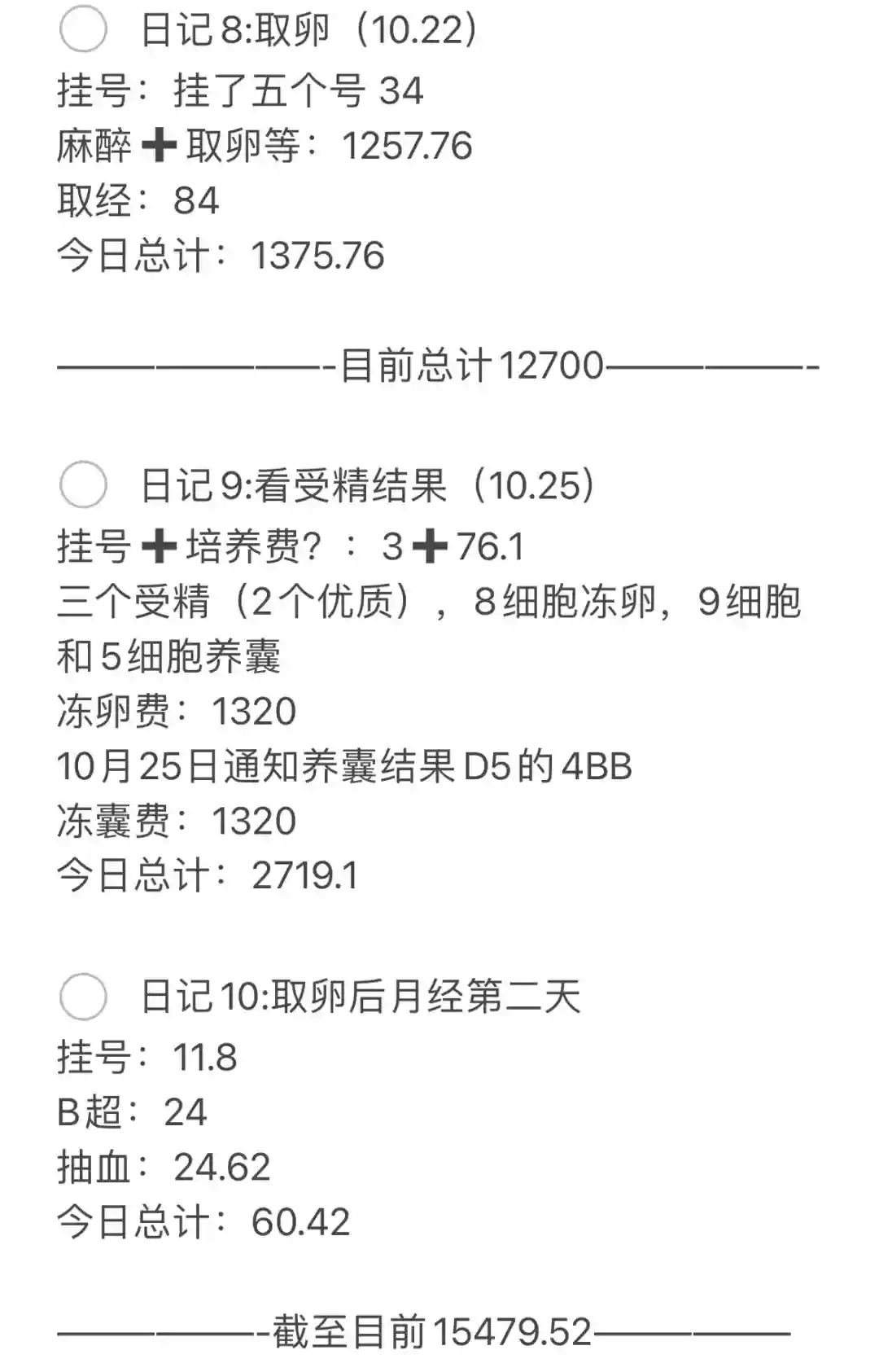 回看这两个月,最痛苦的莫过于促排卵时的副作用,作为脑力劳动者,促排期间恰逢工作最忙碌的时候,脑子又昏又涨,头晕目眩,无法集中精神处理工作,真的太煎熬了。其他现在回头看真不算什么了。
