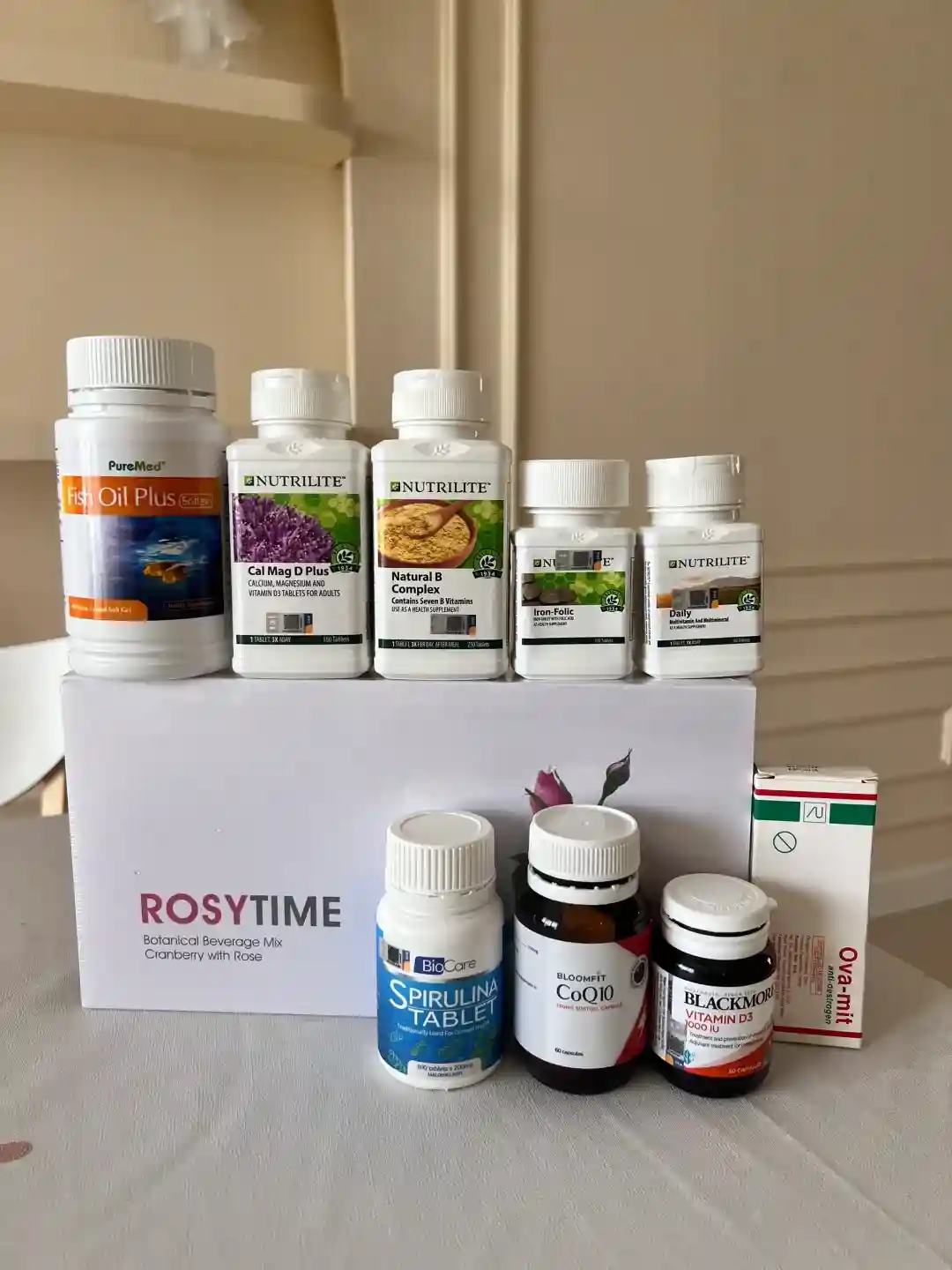 女方 : 促排卵药,Q10,叶酸,维他命D,维他命B,Calsium 和 rosytime.