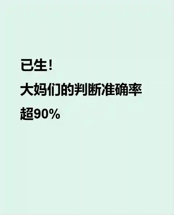 两次怀孕,我和老公对宝宝是男是女这件事一直都无所谓,孕期从来没查过性别。每次都是“盲盒待产模式”。不过这次怀孕期间出去走的比较多,经常就会遇到大爷大妈看到我后开始预测胎儿性别。差不多能有三四十人吧。嘿,别说。这次大妈们的准确率超高,除了一个大妈猜错了,其他竟然都猜对了。正确率超90%!