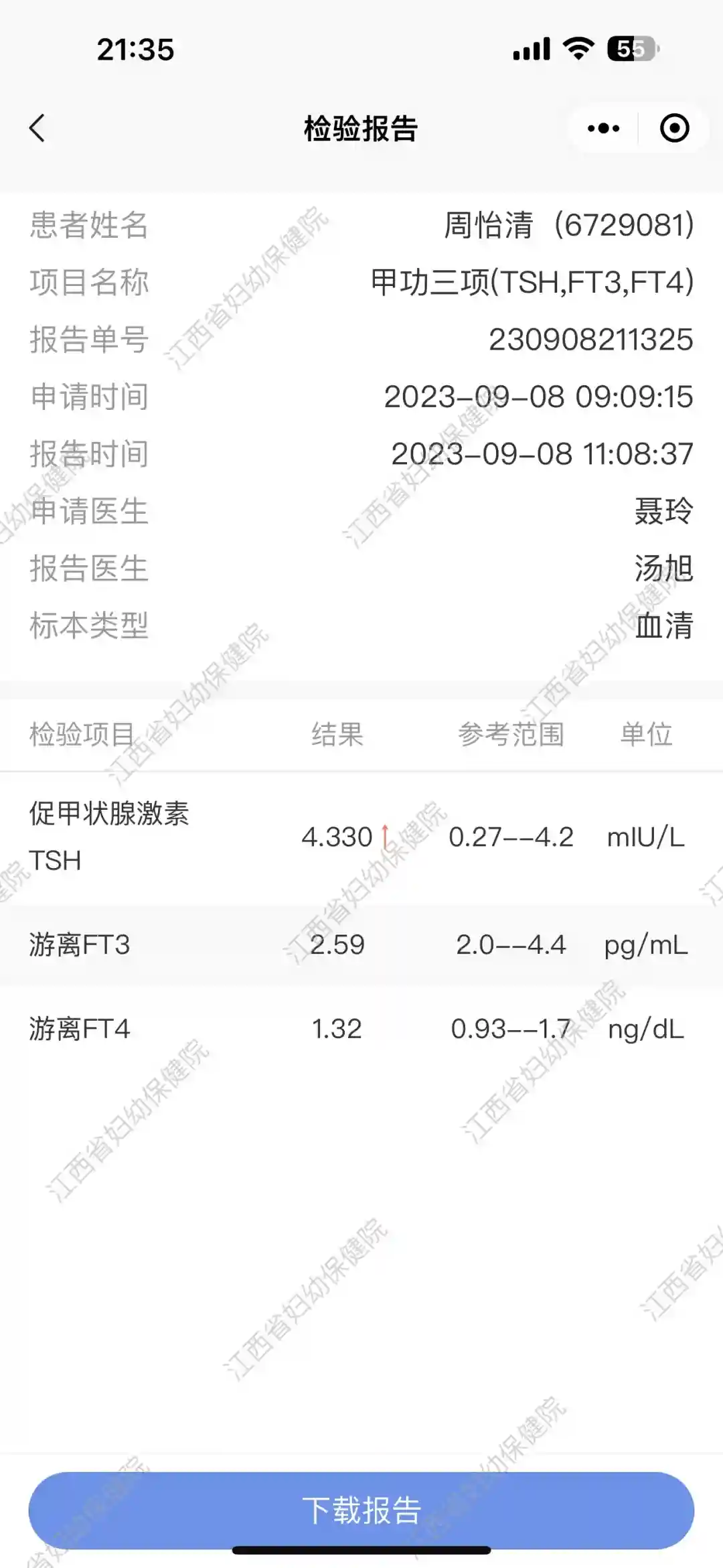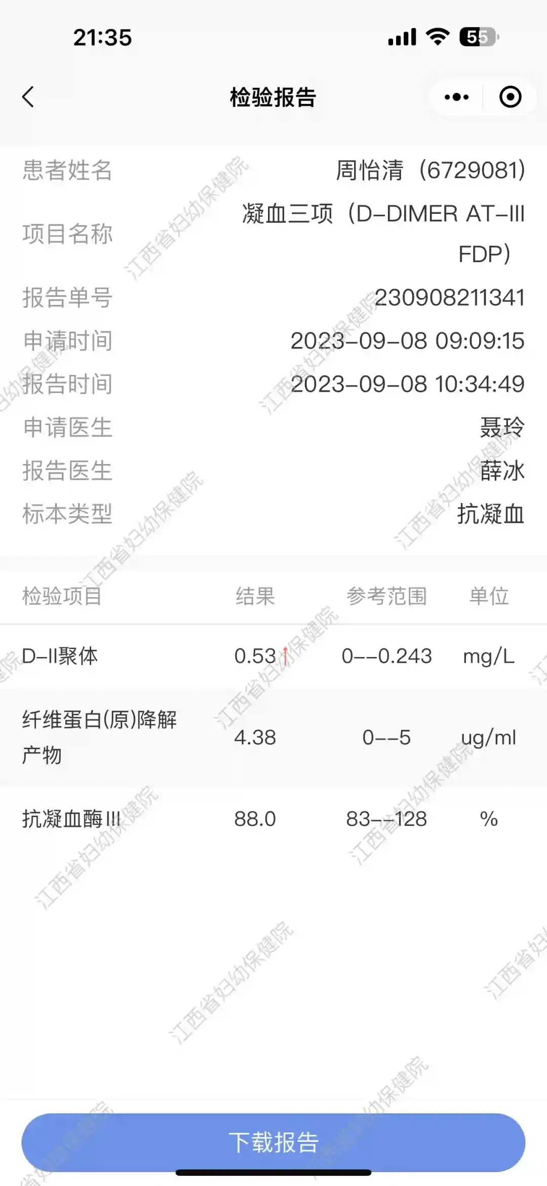 在江西省妇幼保健院做试管移植后第16天