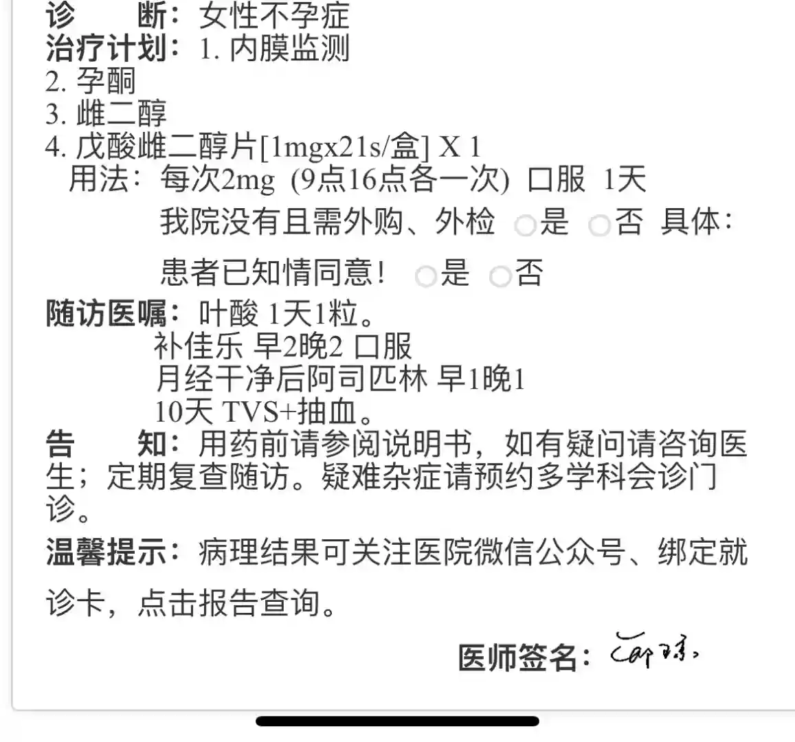 看图二,月经第三天开始吃补佳乐,早二晚二,等月经结束开始吃阿司匹林,早一晚一,吃10天这些药之后返院。抽血做b超。