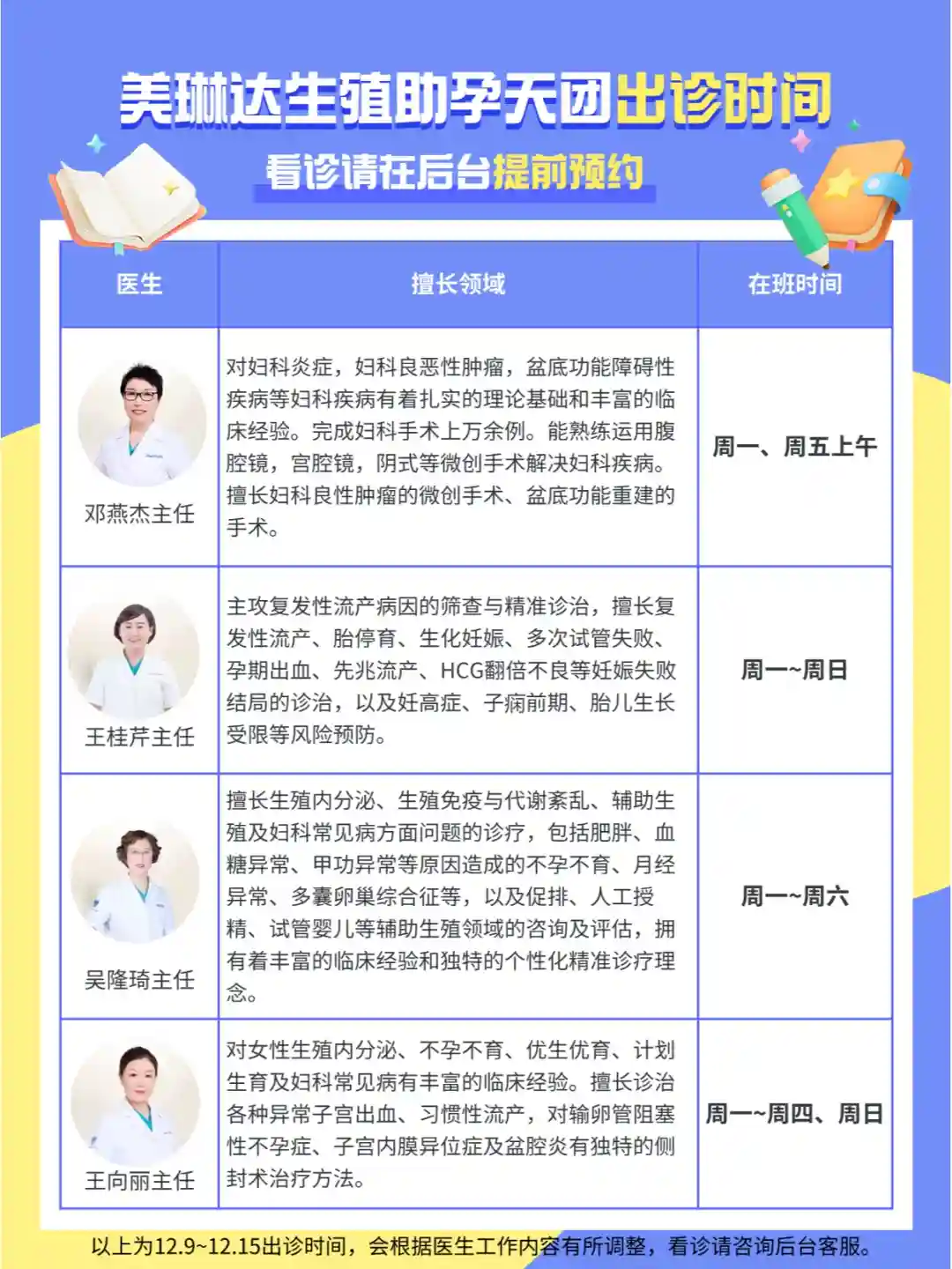 快速预约通道!美琳达生殖助孕团队出诊时间