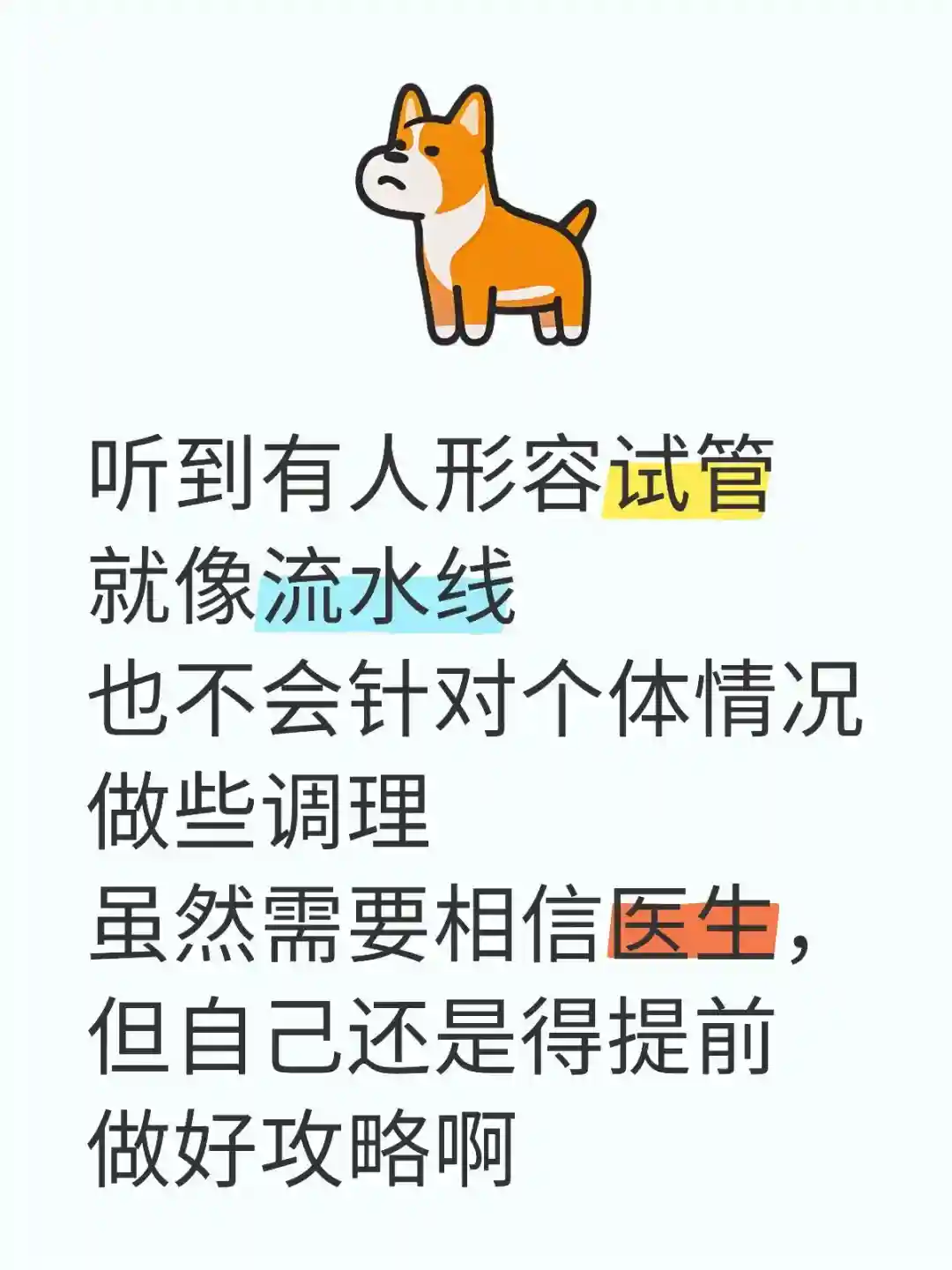 我可以接受这个过程慢一点,但是不想走弯路。对于一个第一次做试管的小白,本来内心当中就有很多说不清道不明的焦虑,各方面需要顾及的细节也不少,如果有搭子可以一起交流,互相出出主意,分享下经验就更好了