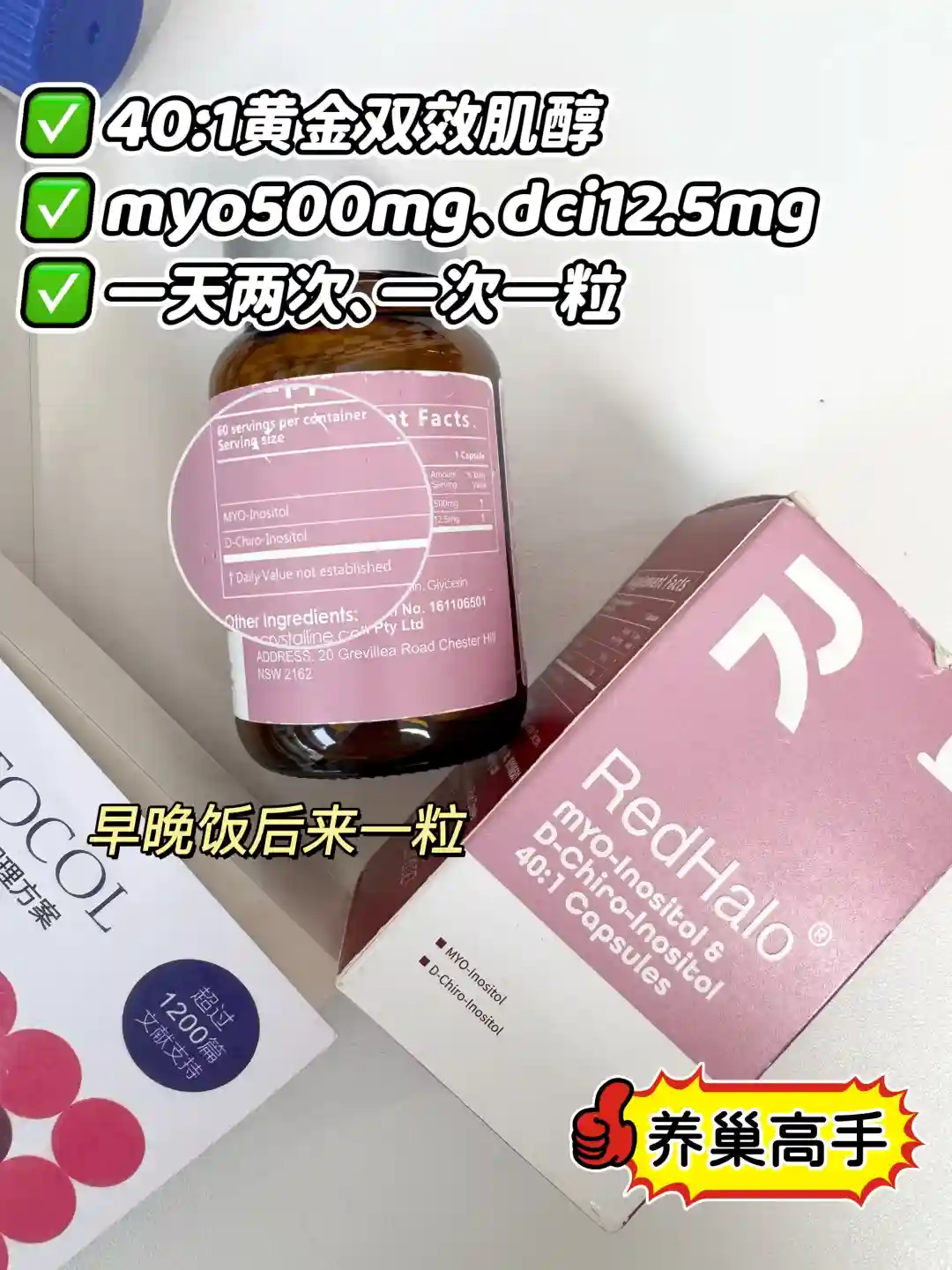 redhalo肌醇,40:1的黄金双效肌醇,一天两次、一次一粒