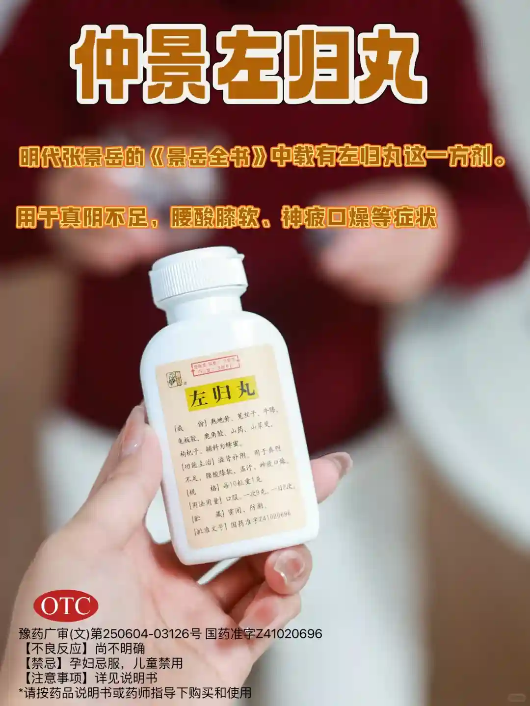 左归丸是补肾阴的经典名方,组方来自明代张景岳的《景岳全书》古书里,临床应用历史悠久,里面全是纯中药成分:熟地黄、山茱萸、菟丝子、枸杞子、牛膝、龟板胶、鹿角胶、山药等,纯补无xie的配方,补益效力更强;且组方符合张景岳”阳中求阴,阴阳协调“的补肾原则,大补真阴的同时还不损伤肾阳,非常适合备孕期服用。仲景作为大品牌,用料还是非常讲究的,精选入药的药材都是源自道地产区的,从源头保证药效✨可以说真正的“药材好,药才好”嘛~
