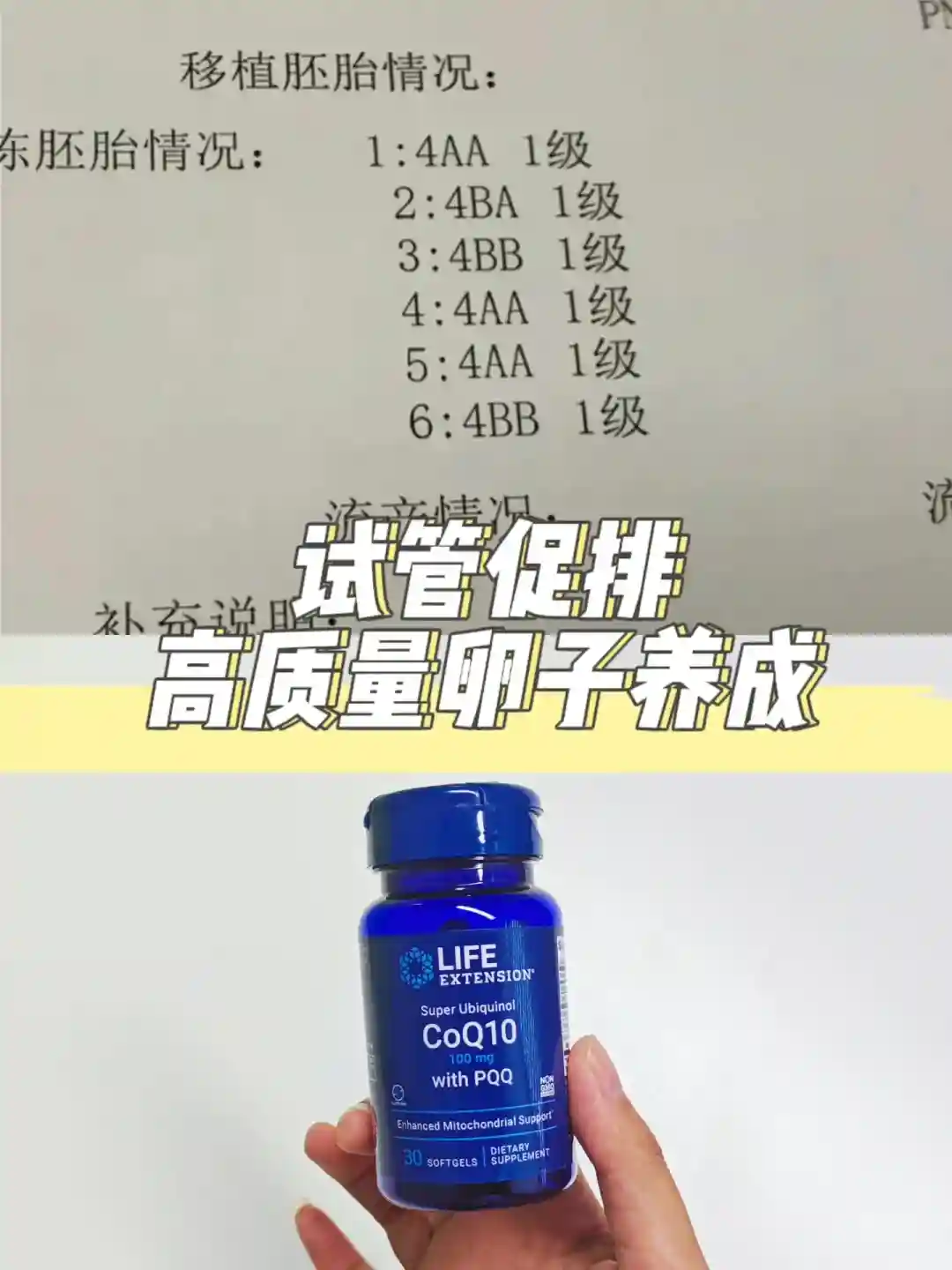试管前做了检查,医生说我Amh值低,卵泡又扁又小,建议我先吃一段时间辅酶再来看看情况,我一开始吃的50mg的,吃了两个月没什么效果,后来问了备孕群里的很多姐妹推荐的沿寿辅酶PQQ,这个是还原型辅酶Q10加了PQQ和富里酸,都是能增强线粒体功能,提高卵子质量的成分,活性和吸收率比其他的都好。我是一连吃了4个多月,没想到这次的卵泡质量比上次检查时好了很多,医生也说我调理的好。