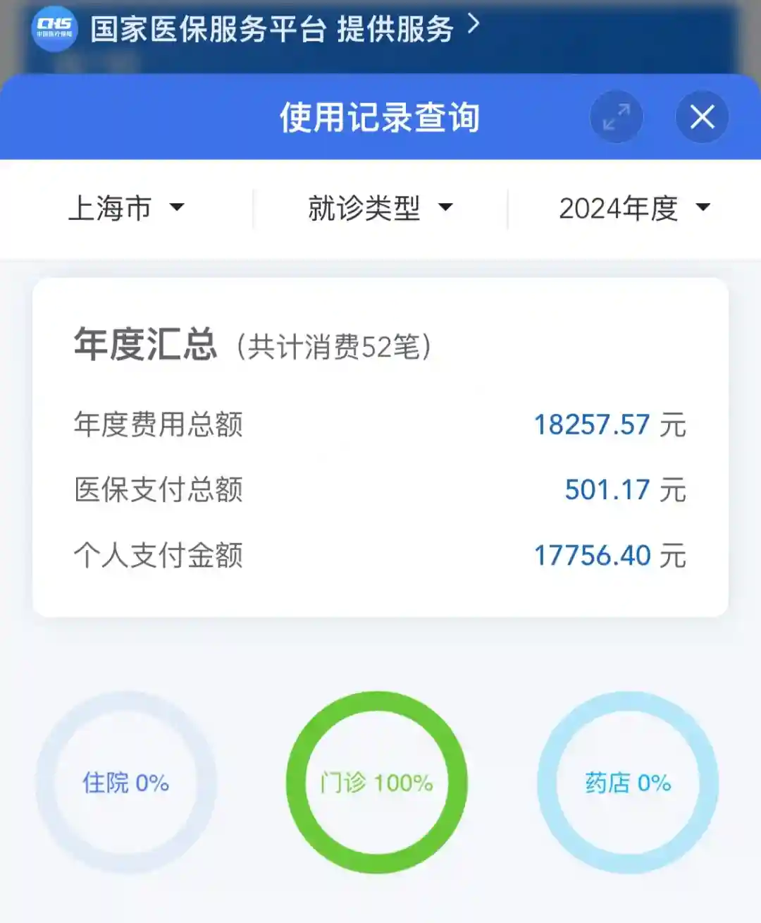 医保个人账户的当年账户余额已经花完,开始用统筹了。