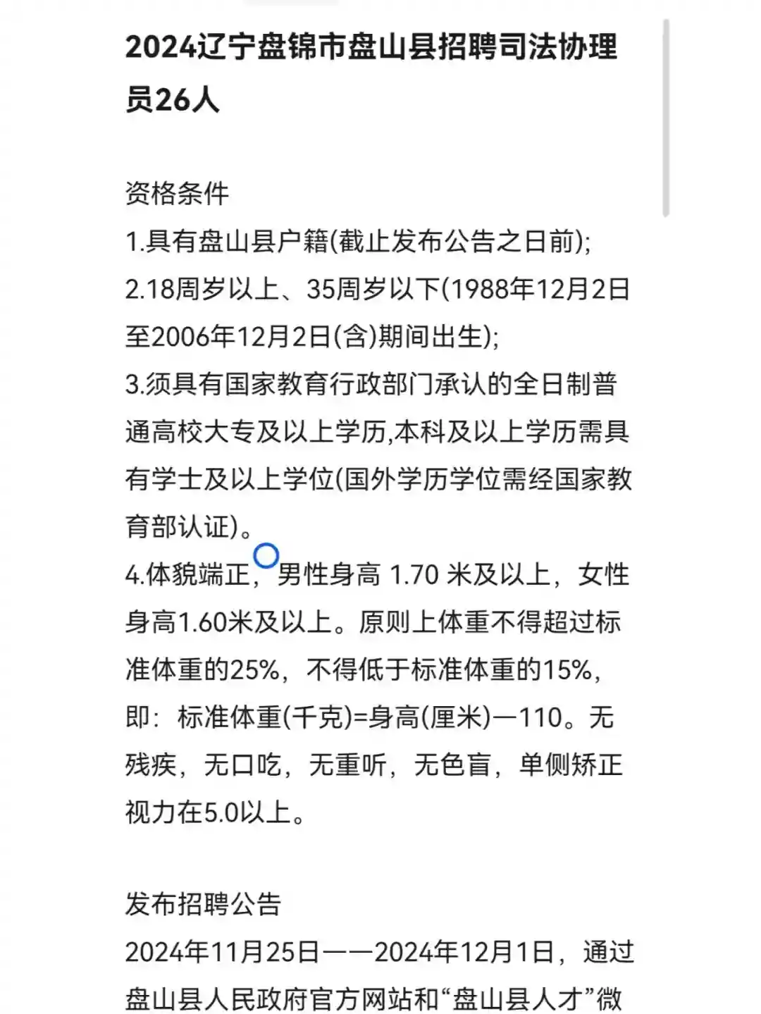2024年11月25日——2024年12月1日,通过盘山县人民政府官方网站和“盘山县人才”微信公众号发布公告。