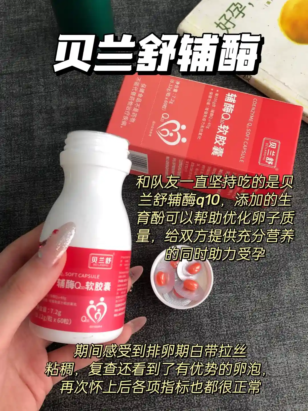 和队友一直坚持吃的是贝兰舒辅酶q10,添加的生育酚可以帮助优化卵子质量,给双方提供充分营养的同时助力受孕。期间感受到排卵期白带拉丝粘稠,复查还看到了有优势的卵泡,再次怀上后各项指标也都很正常