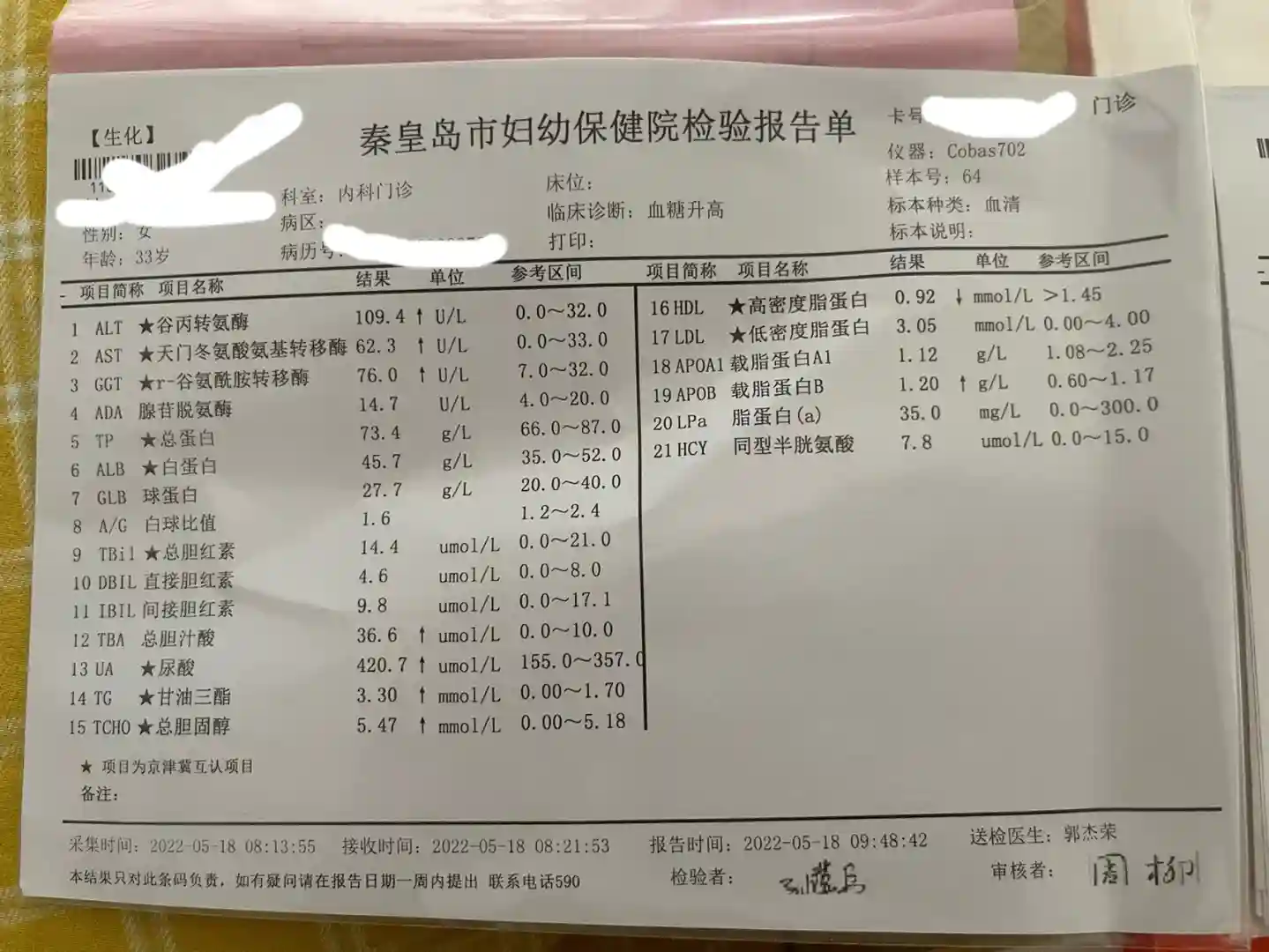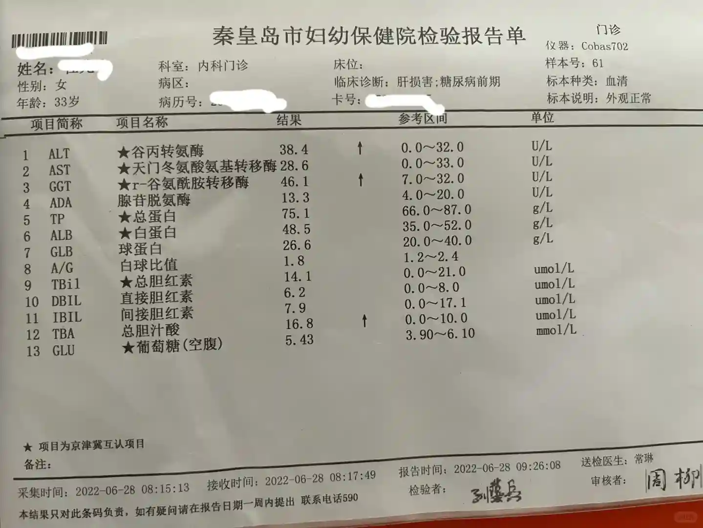 ,换来了一个月后的检测报告。中间测糖耐,我也是喝过糖水的人了,还好身体比较算争气够不上糖尿病。