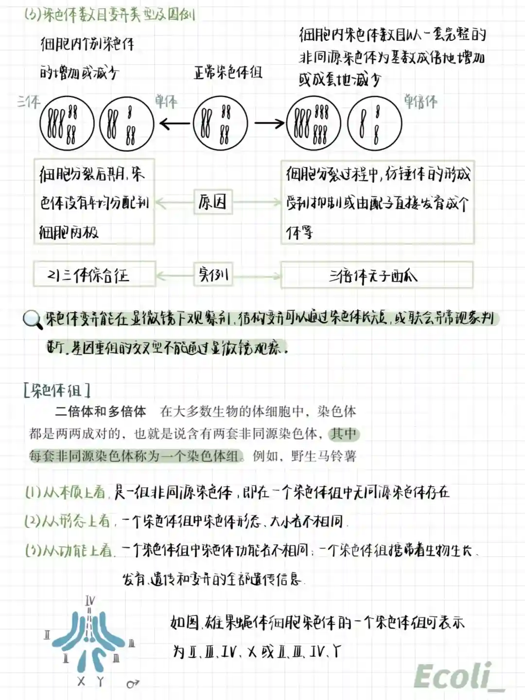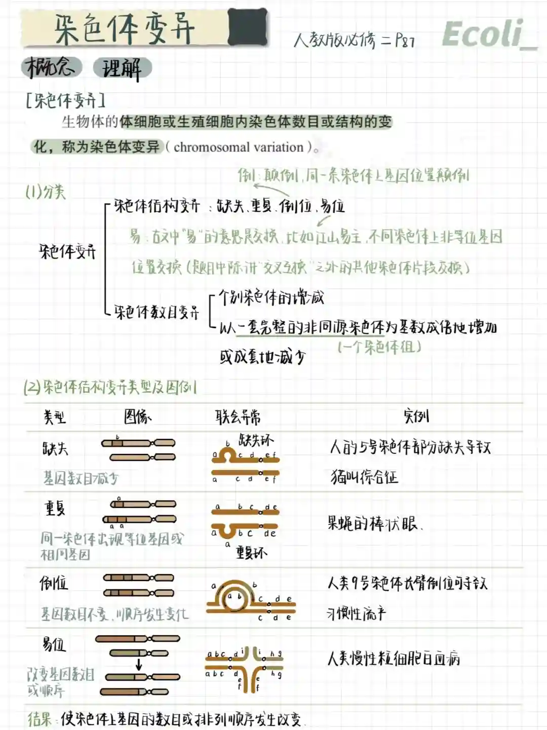✅染色体变异:生物体的体细胞或生殖细胞内染色体数目或结构的变化,称为染色体变异。