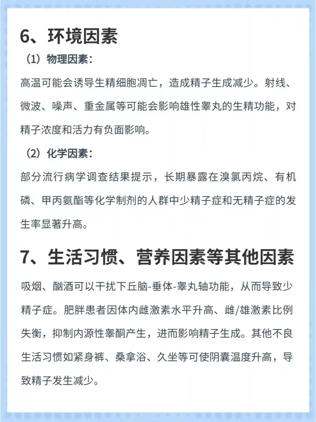 (3)隐睾:由于睾丸所处高温环境,影响精子发生导致少精子症。