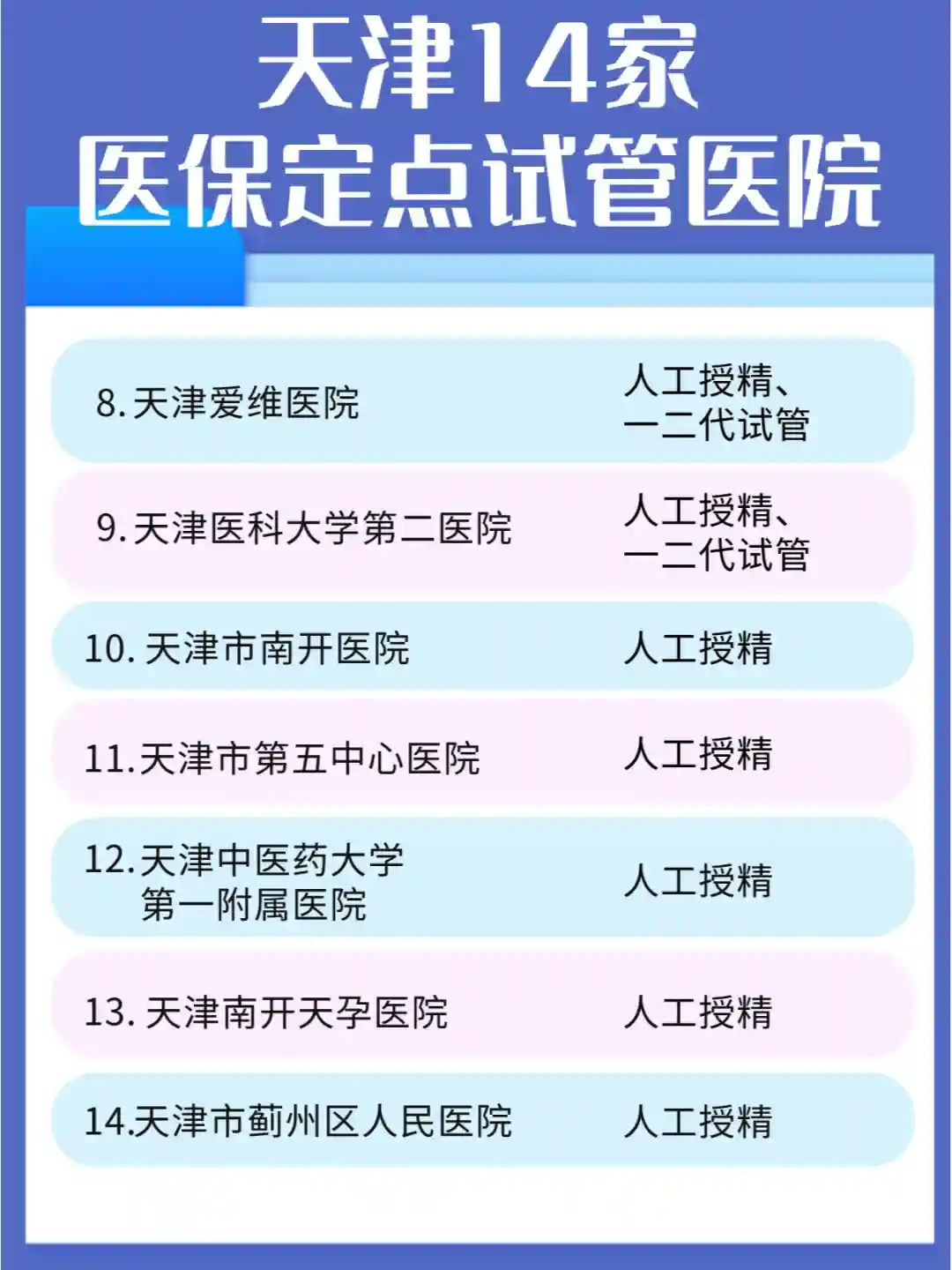 天津14家医保定点试管医院清单 三代试管多久出结果