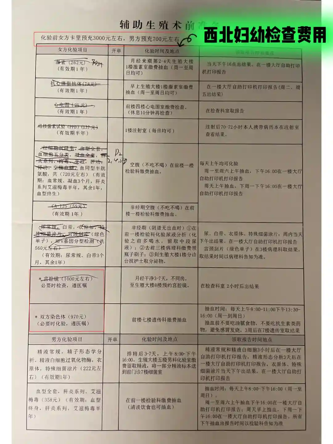 后面转到西北妇幼之后又增加了部分检查…(妇幼这边是有个检查费用清单的,可以参考,我拍在图2了……)