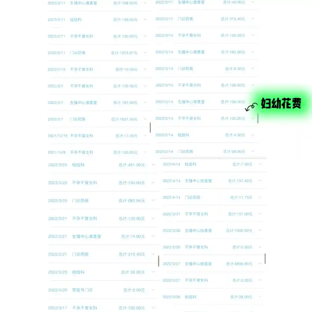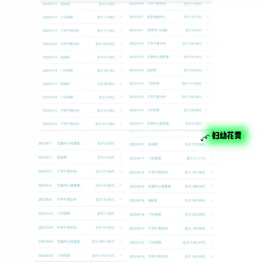 不包含期间叶酸、DHEH、辅酶Q10等药物的购买…以及理疗、中药、针灸、中药灌肠…等等数不清的交通费和杂费…