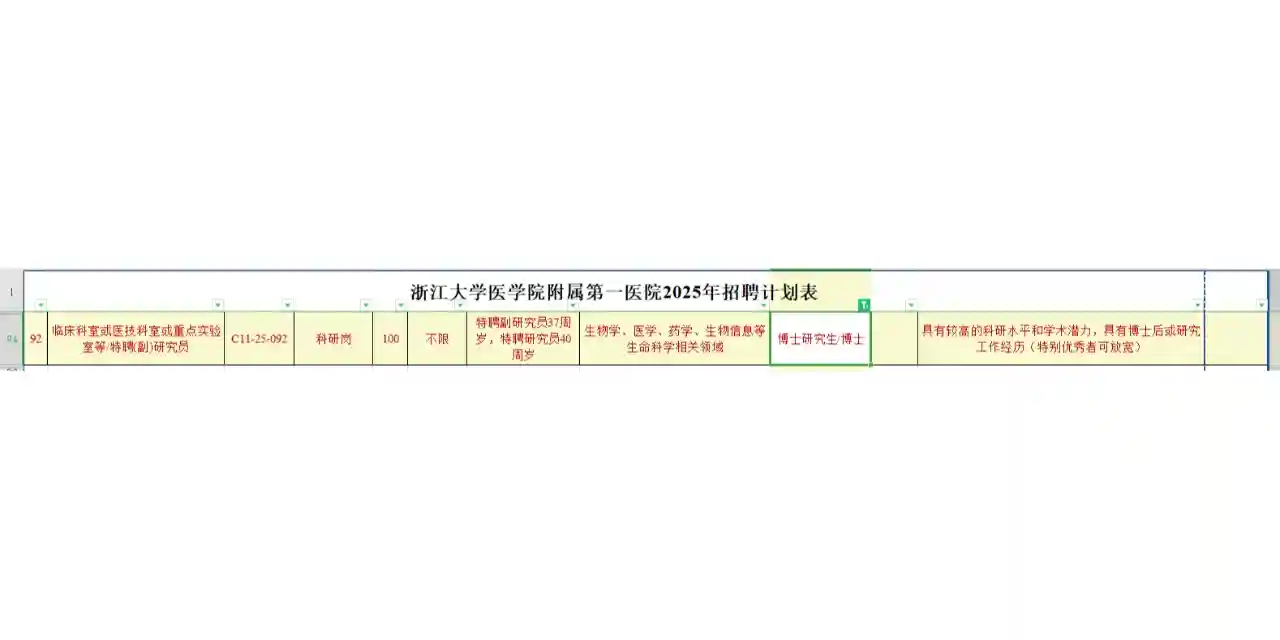 2、浙一博士科研岗,截止日期12月29日(周日)24时,不安排笔试,面试两轮,在2025年2月底前完成相对集中的招聘。(硕士还报不了 #浙一
