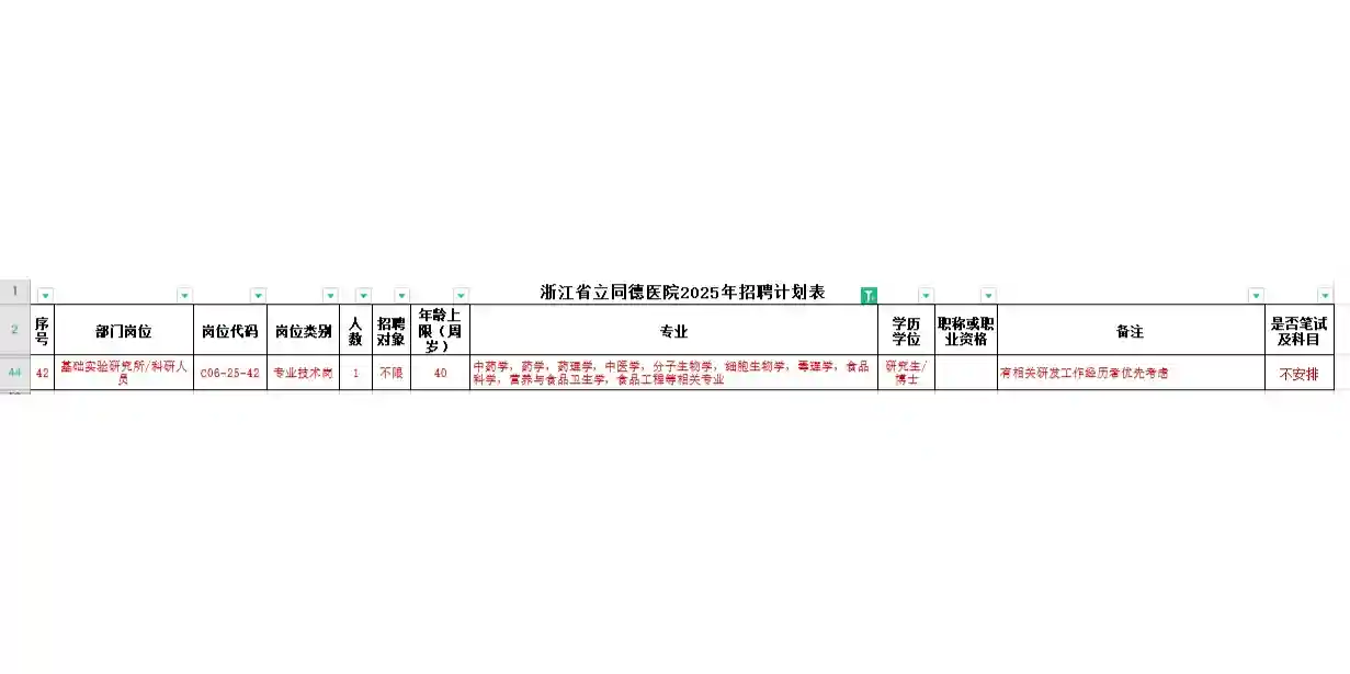 #浙江省中山医院6、省立同德医院有博士科研岗,毒理和营养方向